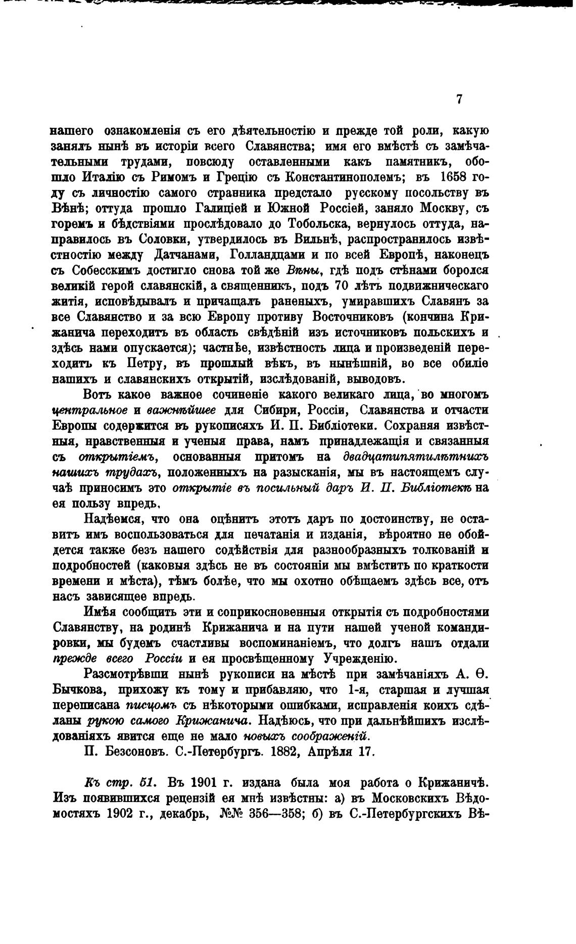 стр. 61. Въ 1901 г. издана была моя работа о Крижанич±.