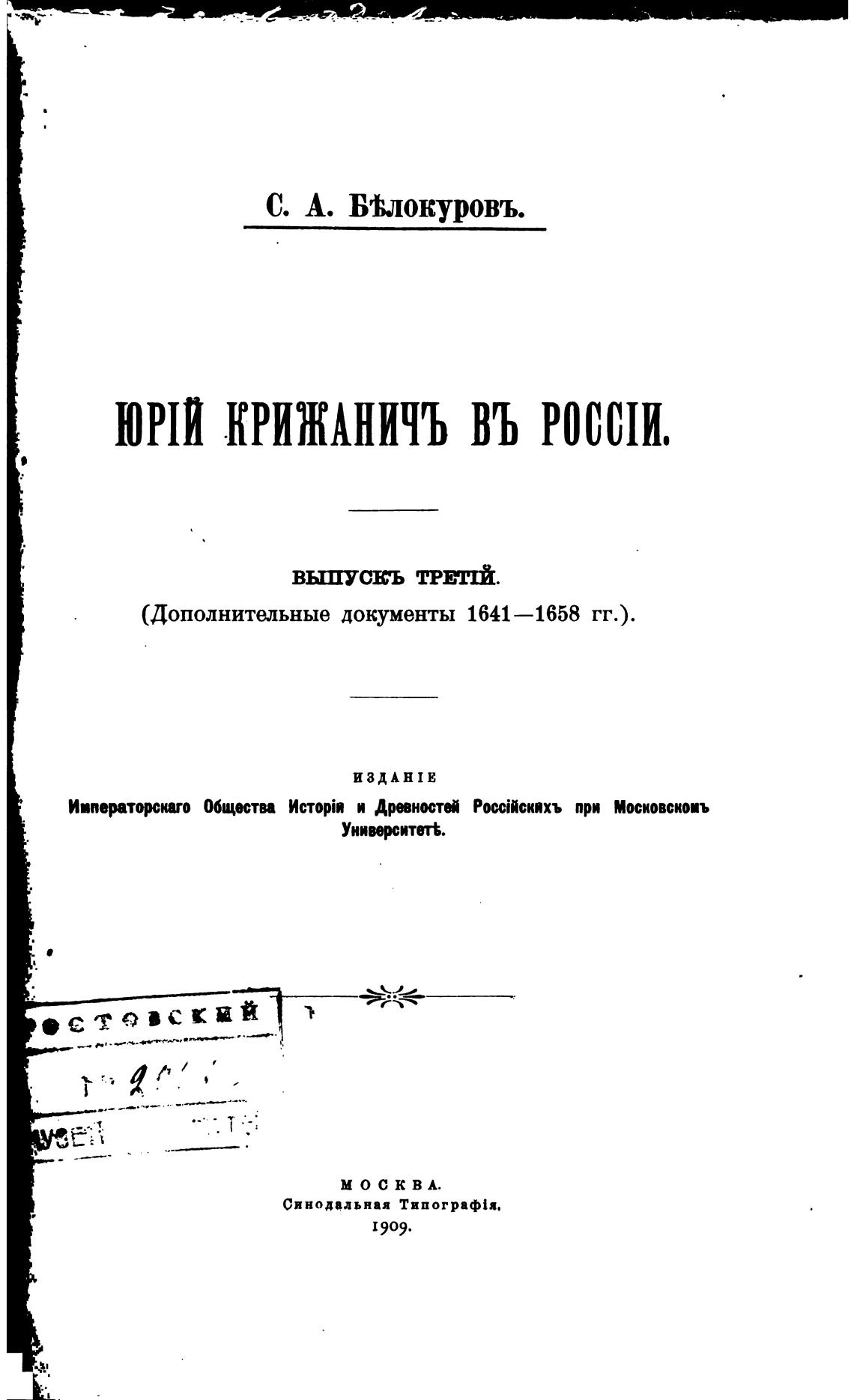 КРИЖАНИЧЪ ВЪ РОСШИ,