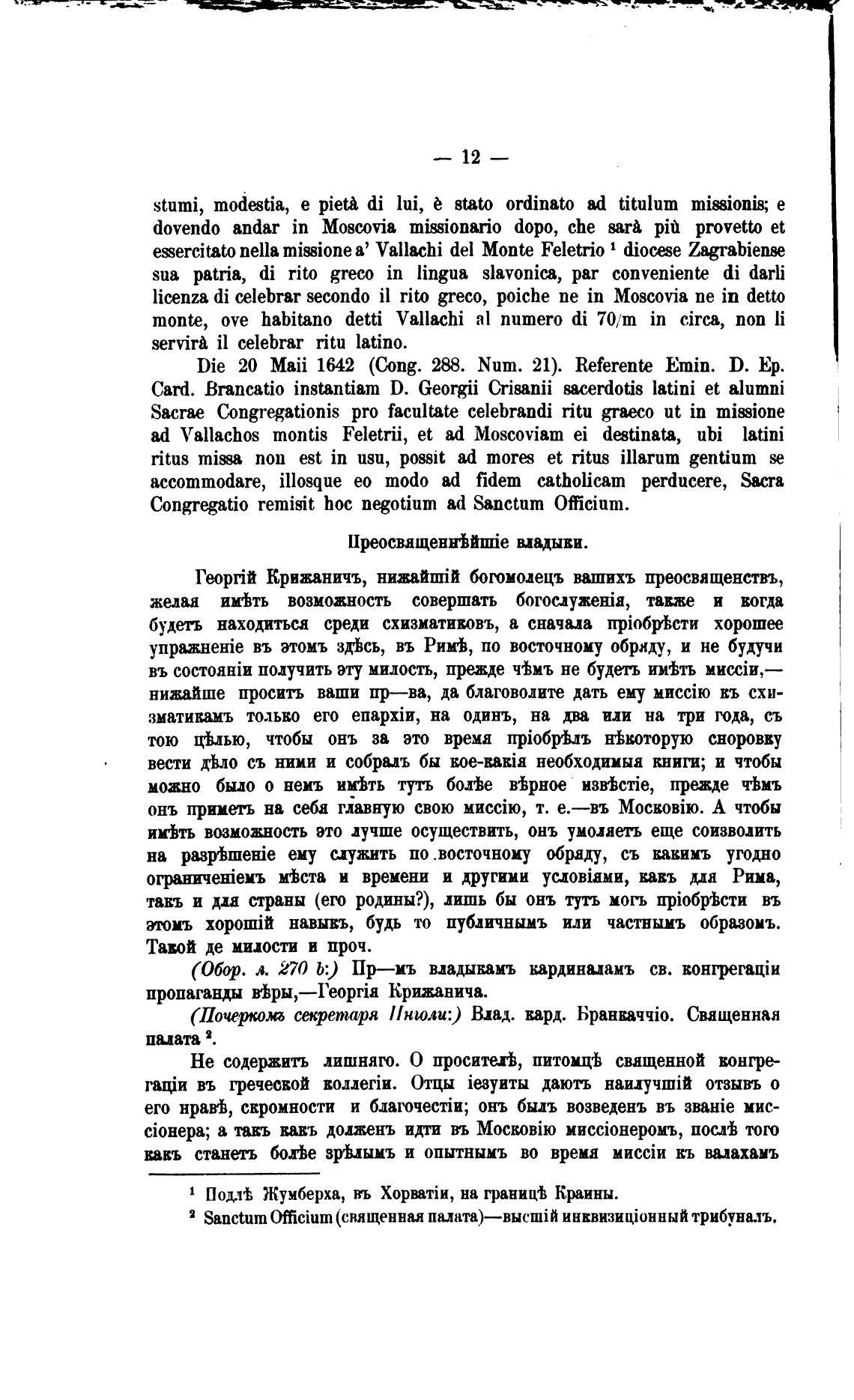 Геор:јй Крижаничъ, богомодецъ вашихъ преосвященствъ,
