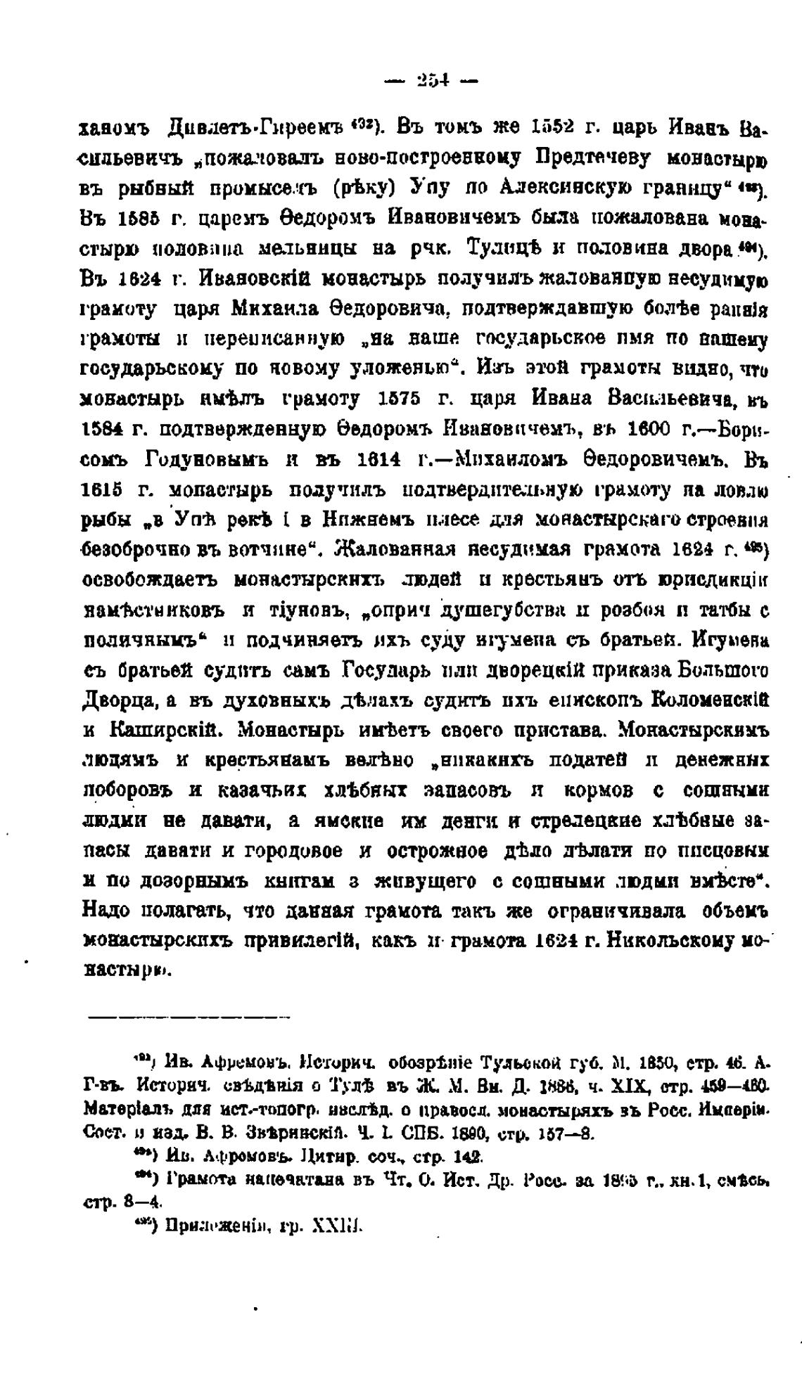 Въ i624 т. ИвановскШ монастырь получилъ жалованпую несудимую