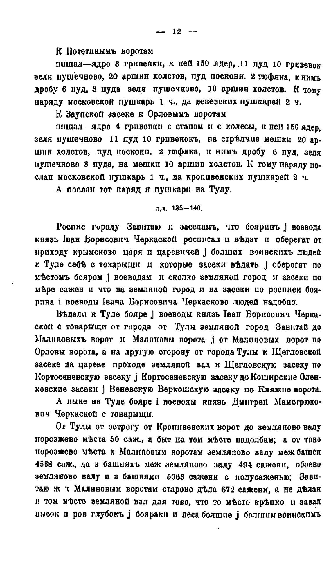 ты ж Малиновым воротам старово 672 сажени, а не д•Ьлан