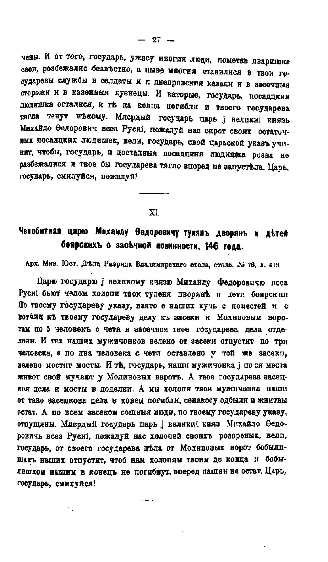 Царю государю ј ветхому ЕВЯЗЮ Михайлу Федоровичю всеа