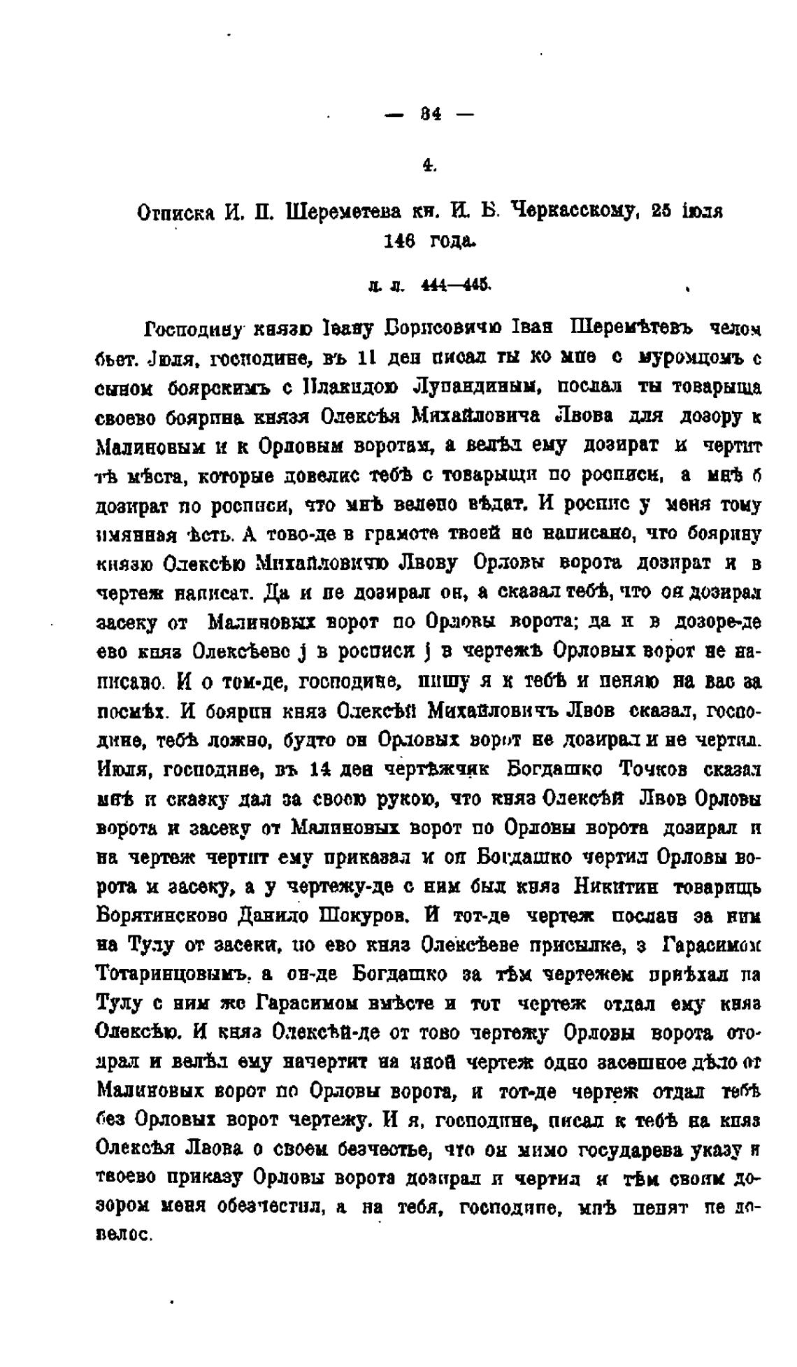 Отписка И. П. Шереметева кн. И. В. Чвркаеевому, 25