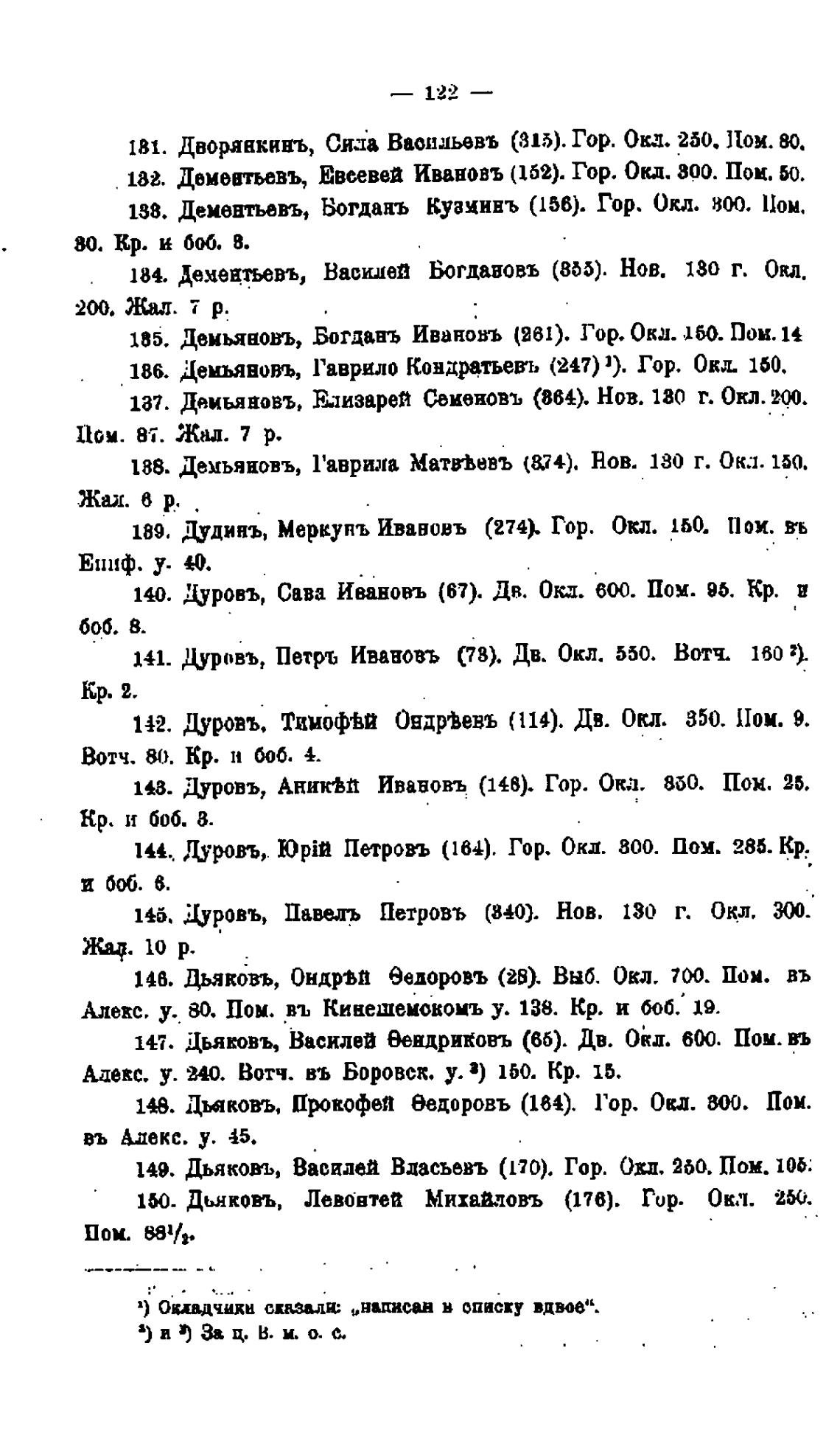 189. Дудинъ, Мервуяъ Ивавовъ (274). Гор. Окл. 150. Пои. вь