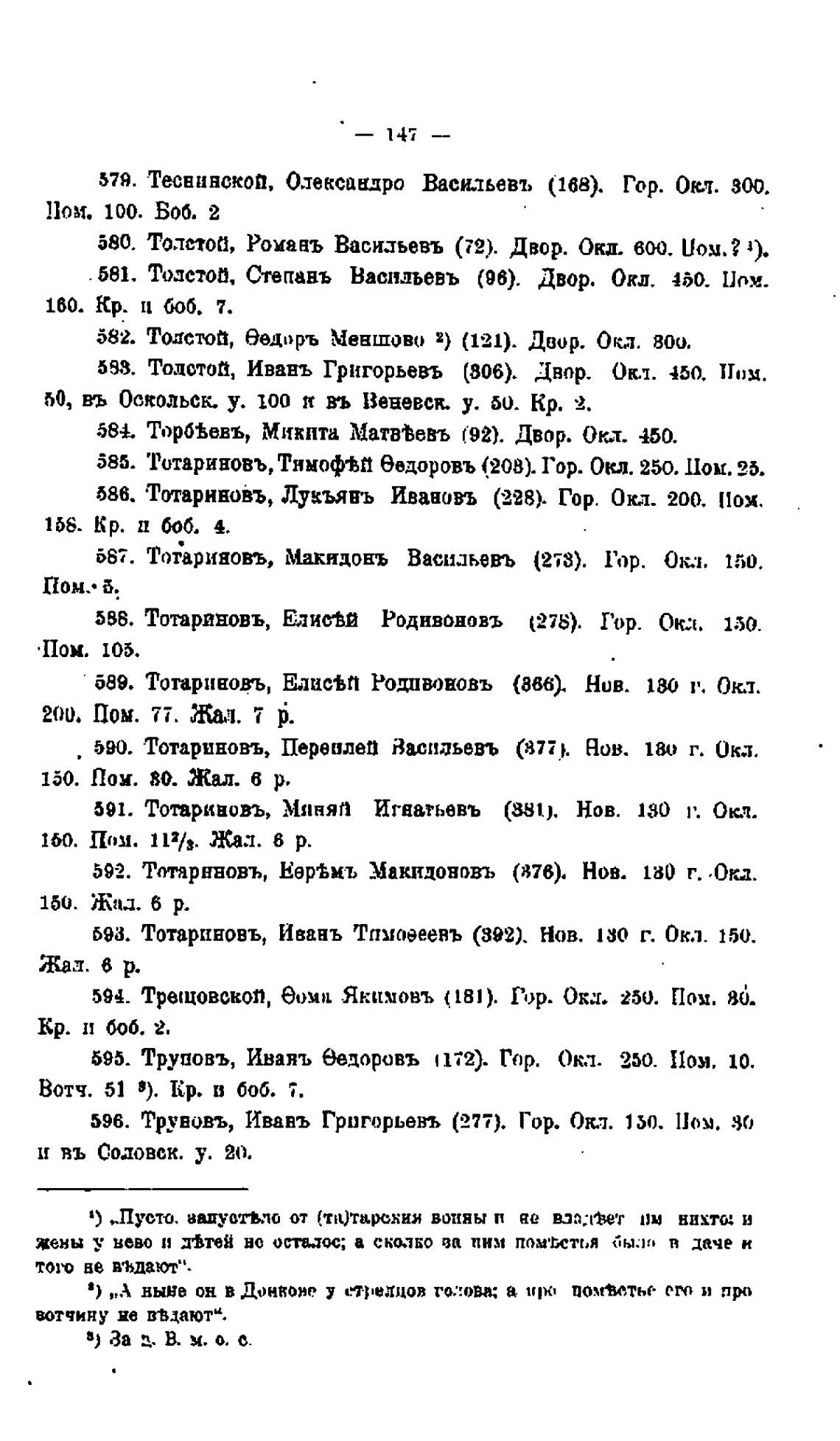 595. Труповъ, Иваяъ бедоровъ 1172). Гор. Ока. 250. Поя, 10.