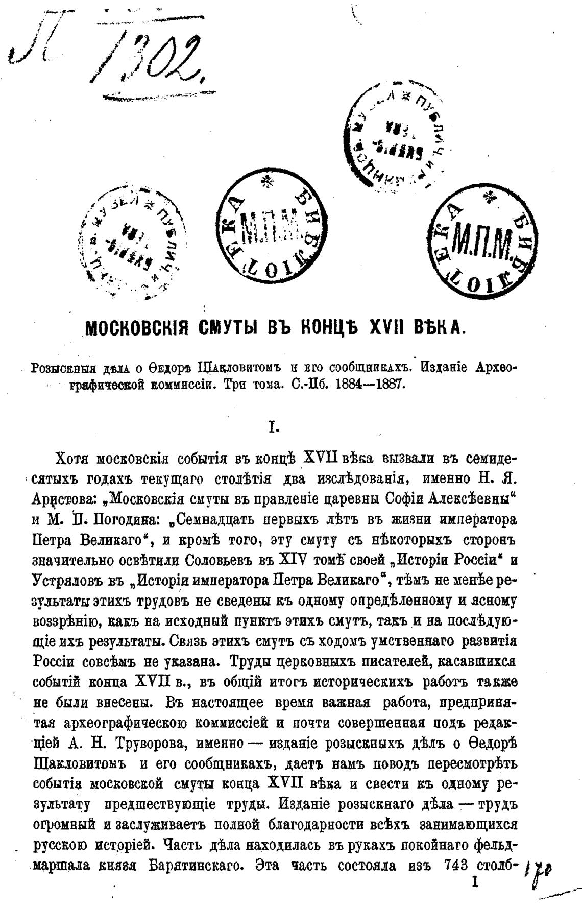 Шакловитомъ и его сообщнивахъ, даетъ намъ поводь пересмотр±ть
