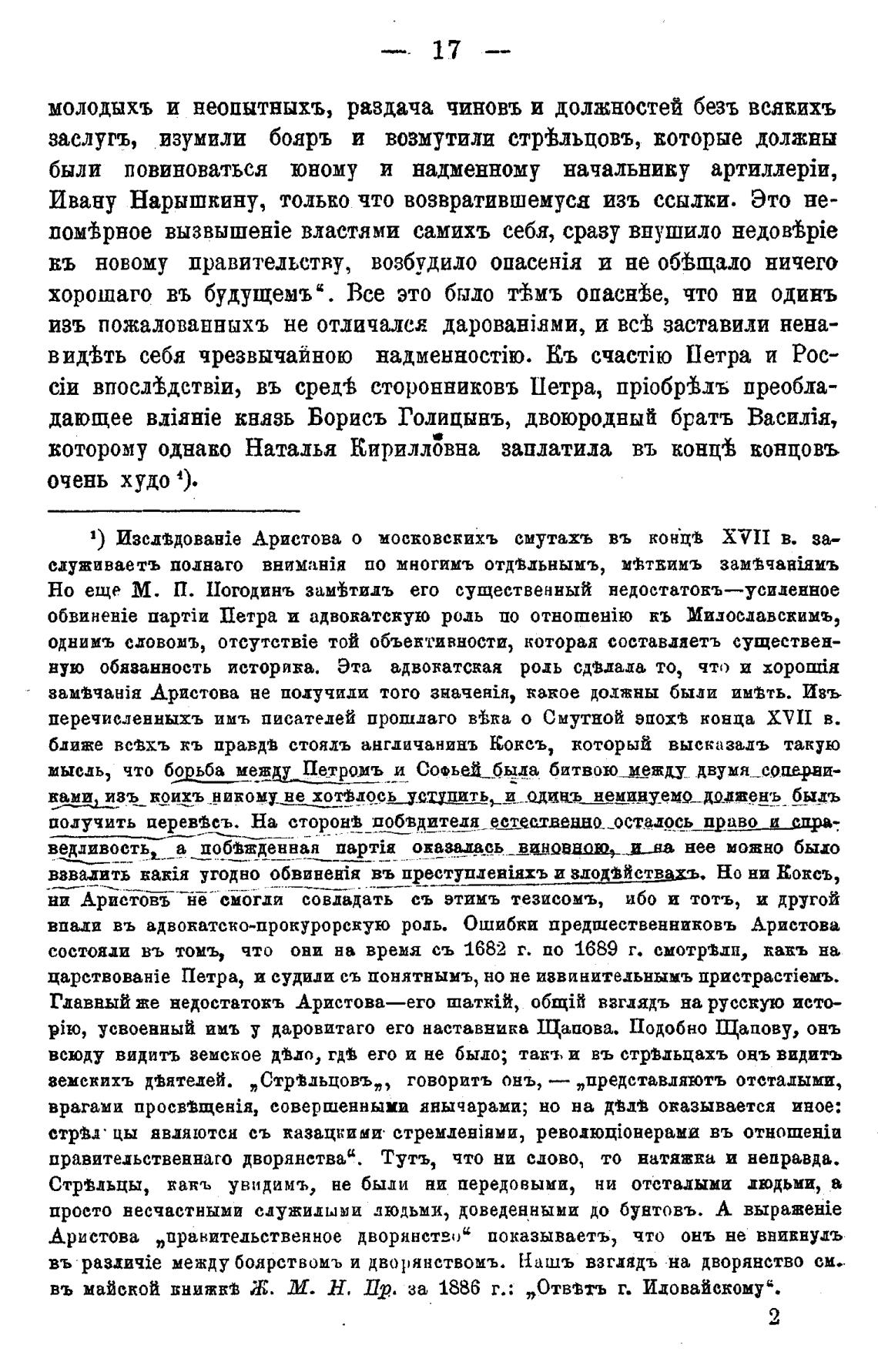 Аристова „правительственное дворянство“ показываетъ, что онъ не внивнулъ