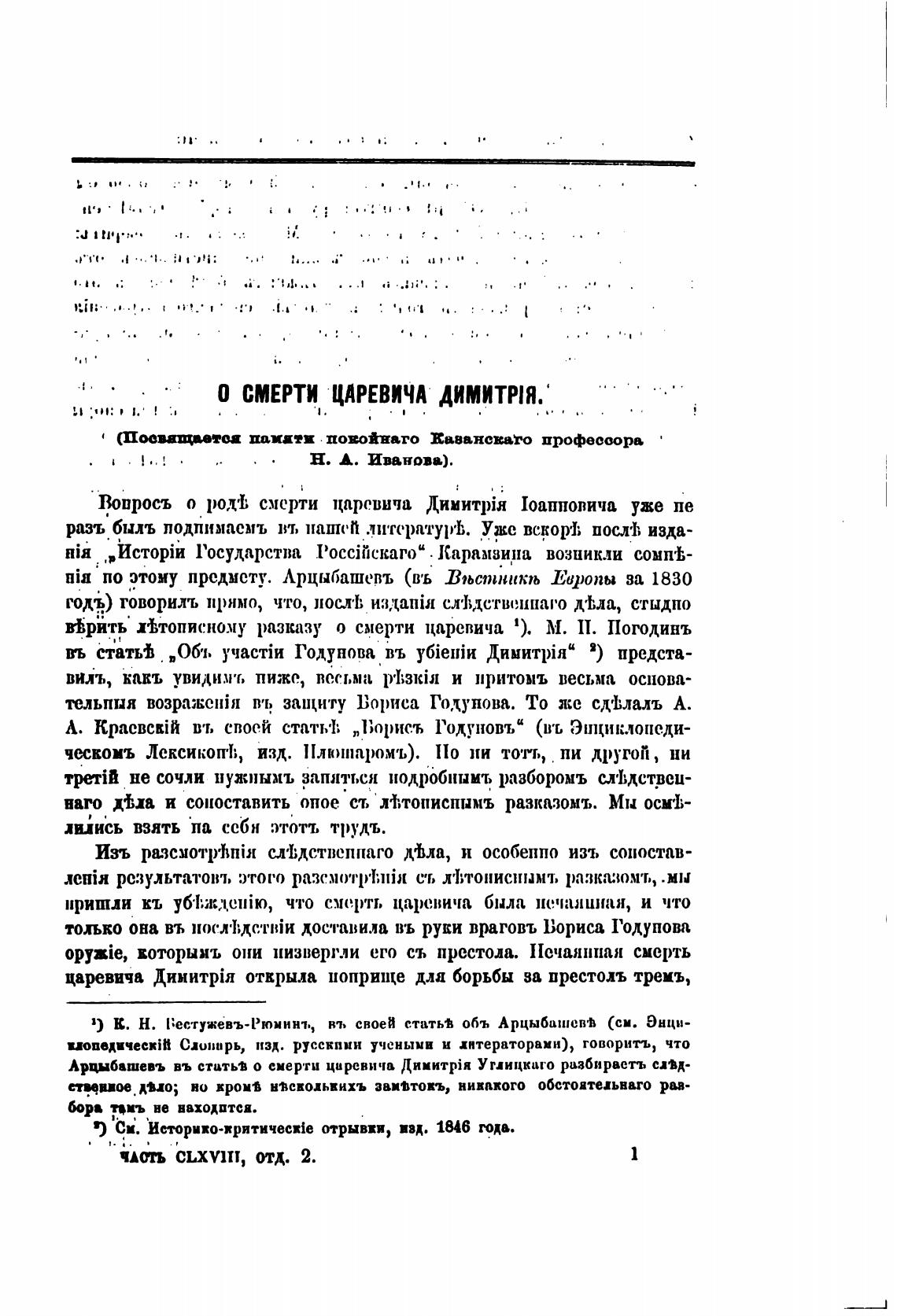 Вопросъ о porI; смерти царевича 1оапновича уже пе