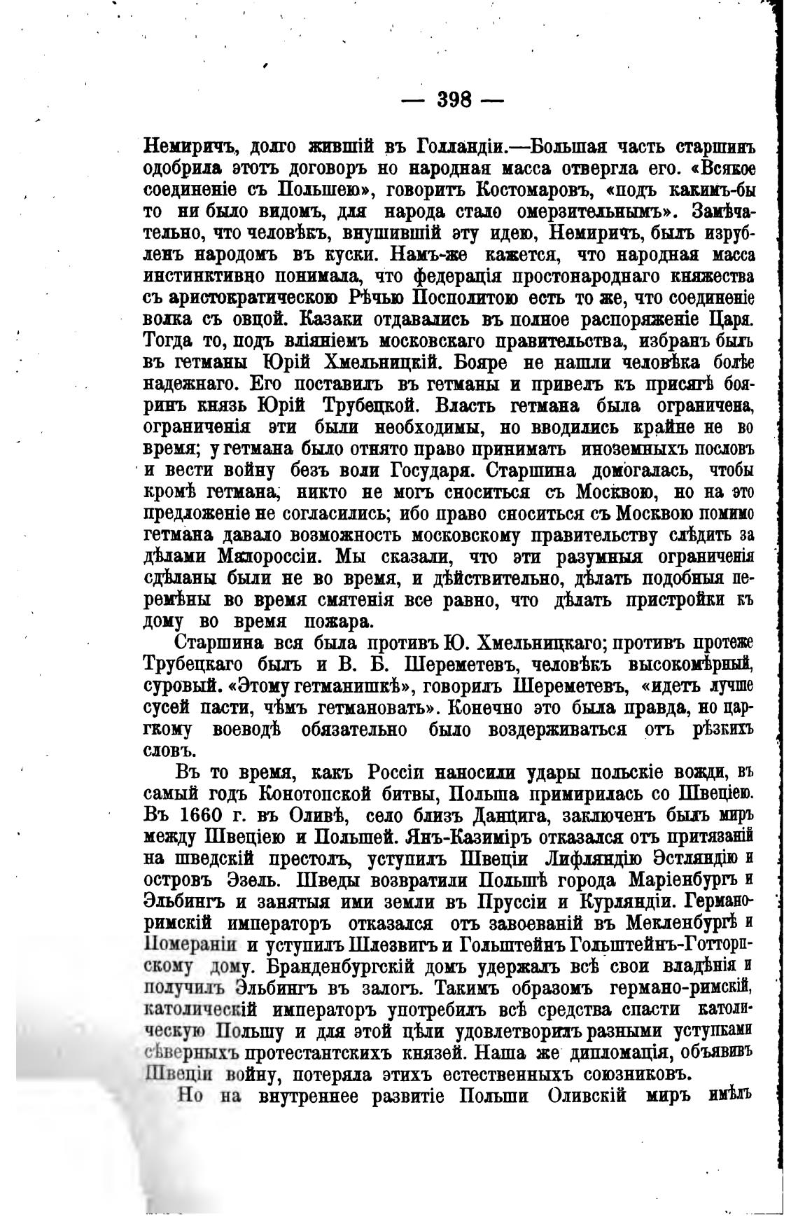 съ Польшею», говорить Костомаровъ, «подъ какииъ-бы