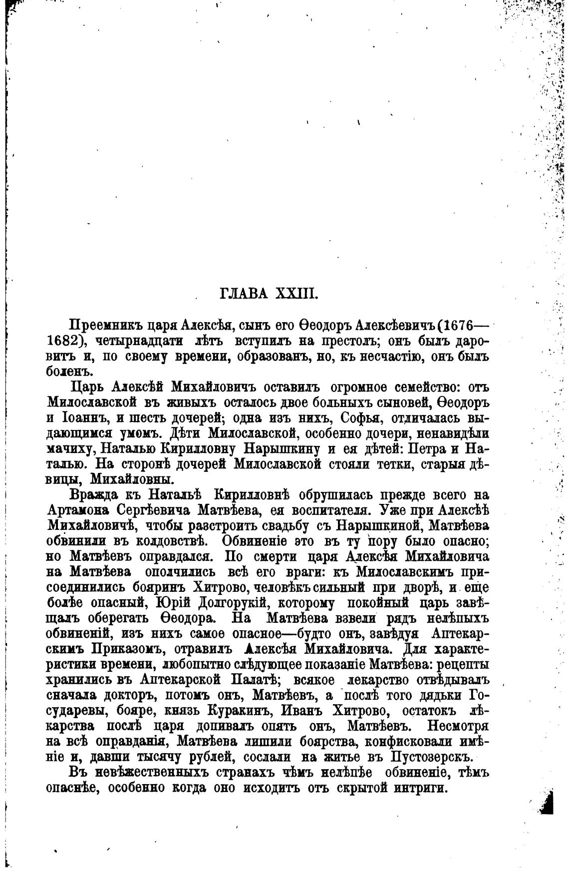 но Матмевъ оправдался. По смерти царя Адекс'ђя Михайловича