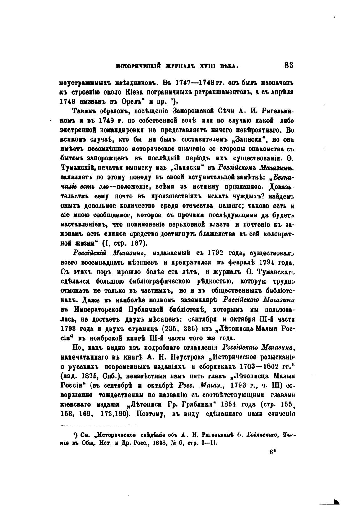 Туманект, печатая выписку взъ „Записки“ въ Россысимъ Магазина,