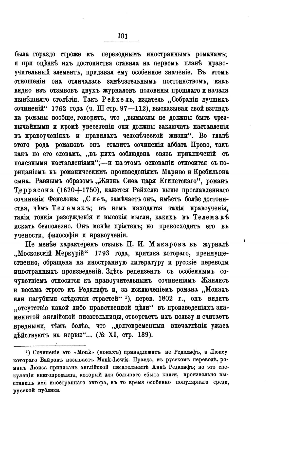 и весьма строго кь Редклифъ и, за романа „Монахъ
