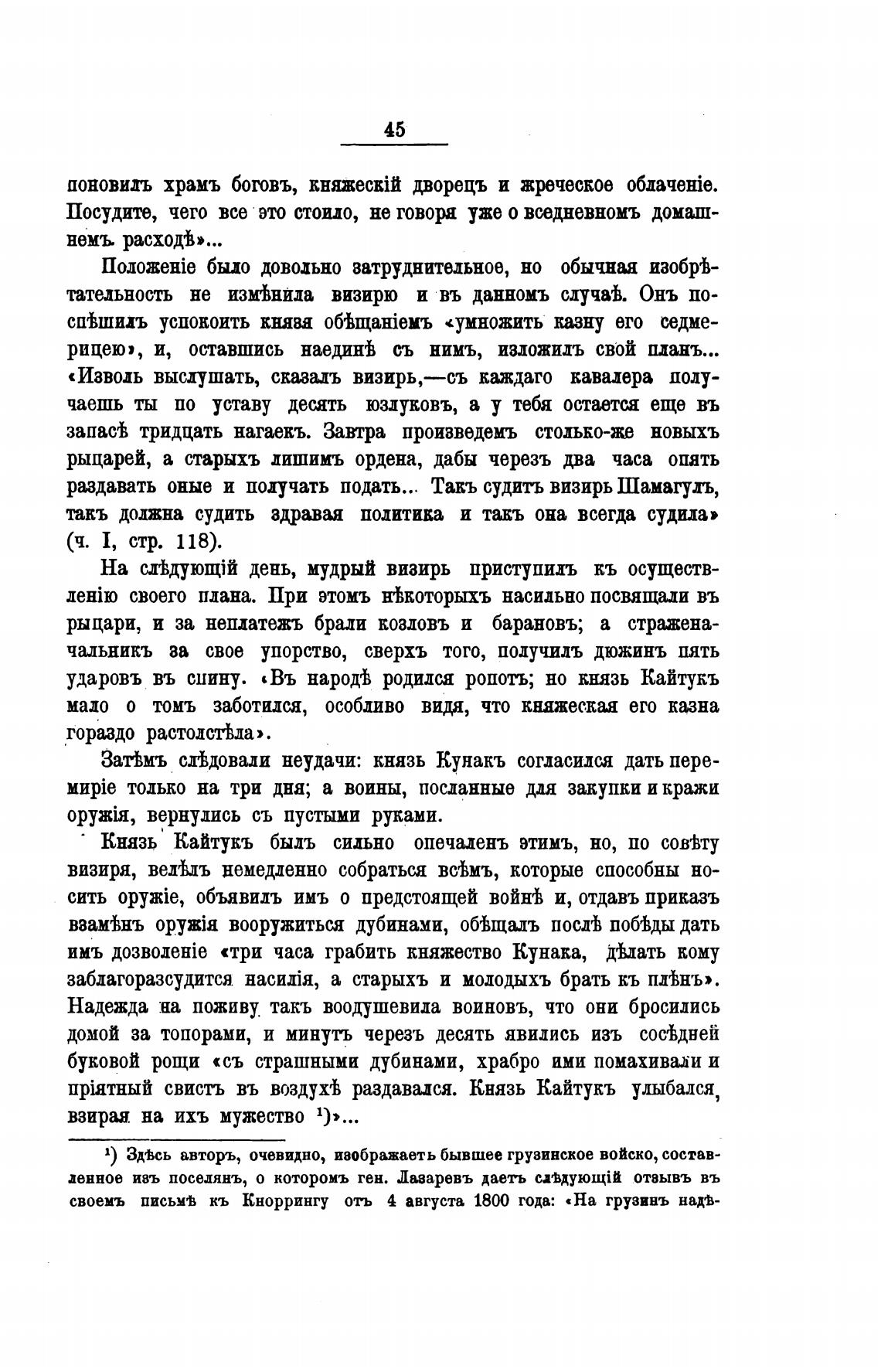своемъ письмв кь Кноррингу отъ 4 августа 1800 года: Ла грузинъ надв-