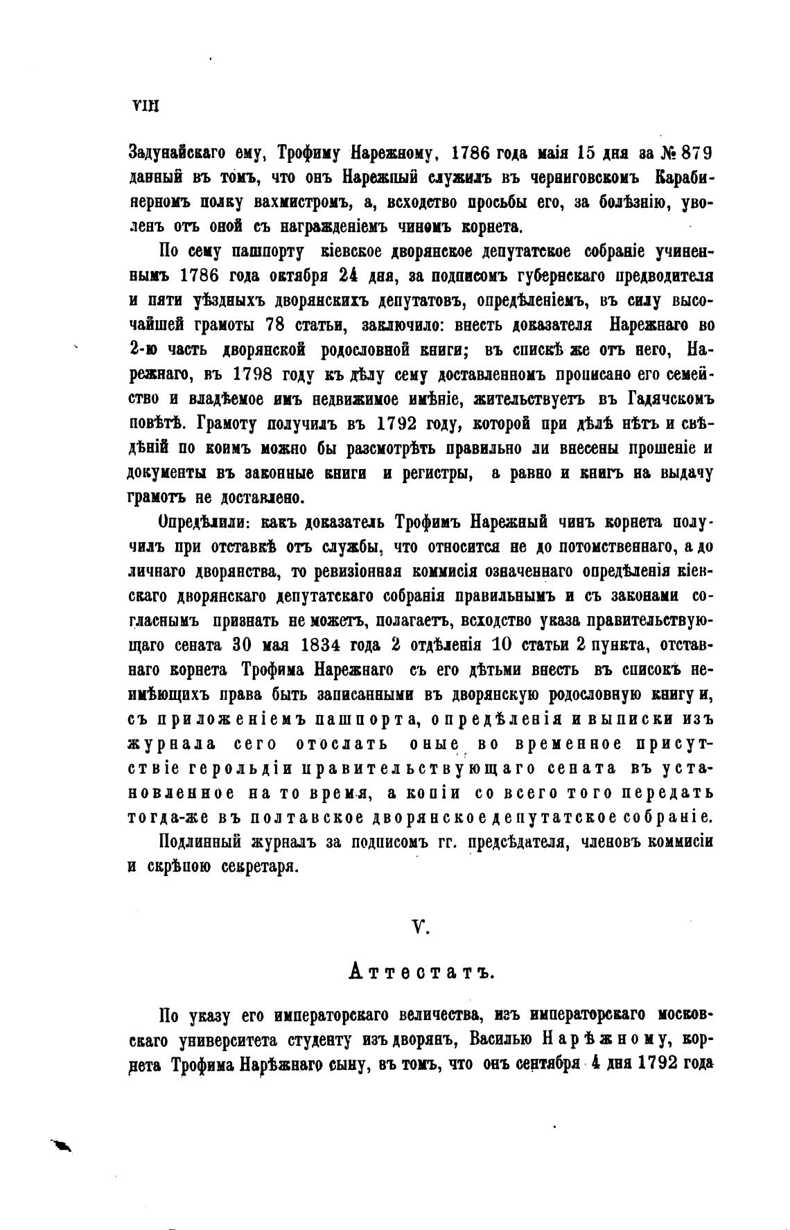 Опредшили: ИЕЪ доказатель Трофимъ Нарежный чивъ корнета иолу-