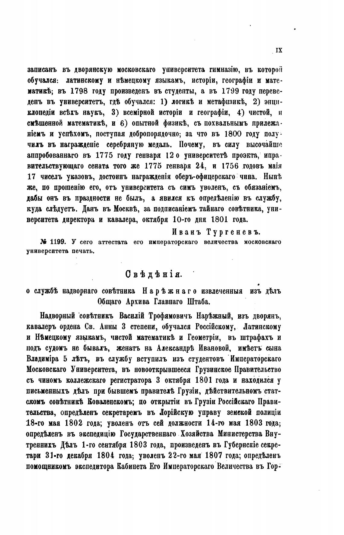 М 1199. У сего аттестата его императорскаго величества московскаго