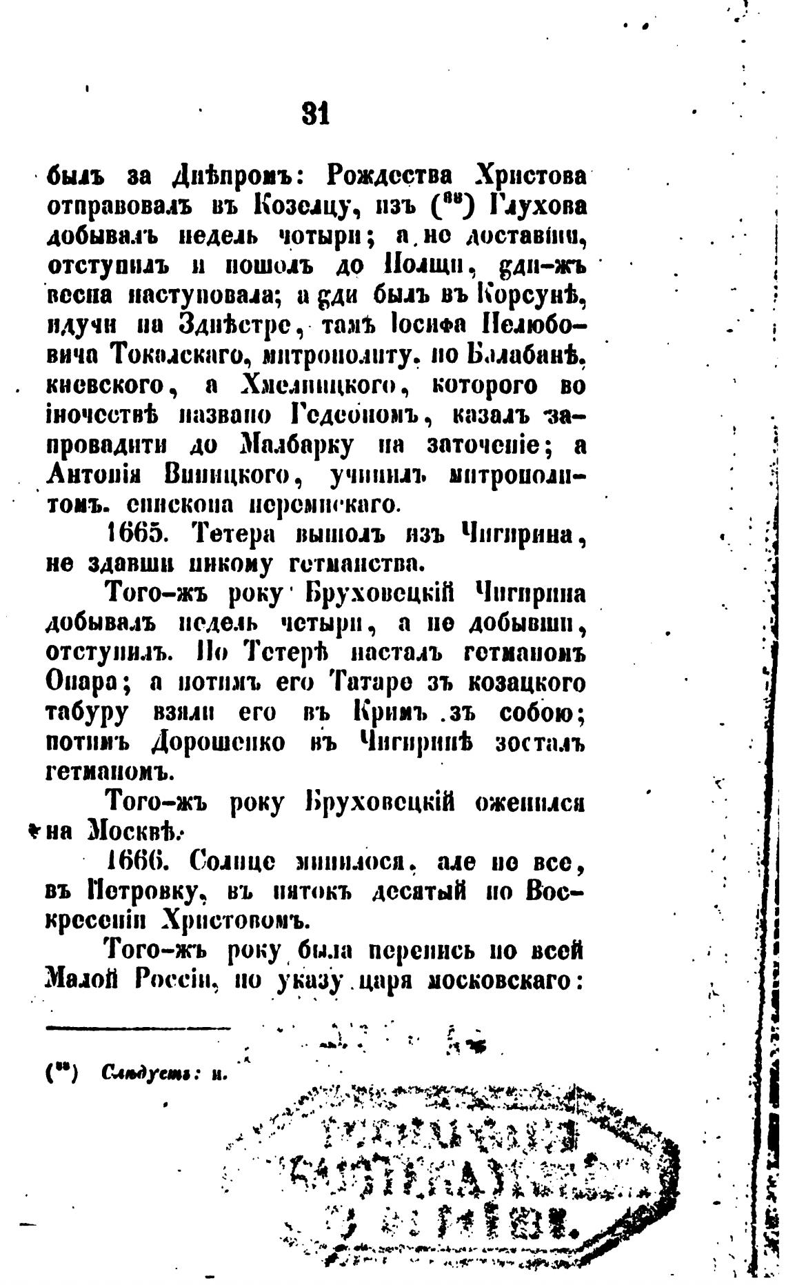 1665. Тетера выииолъ язь Чигирина ,