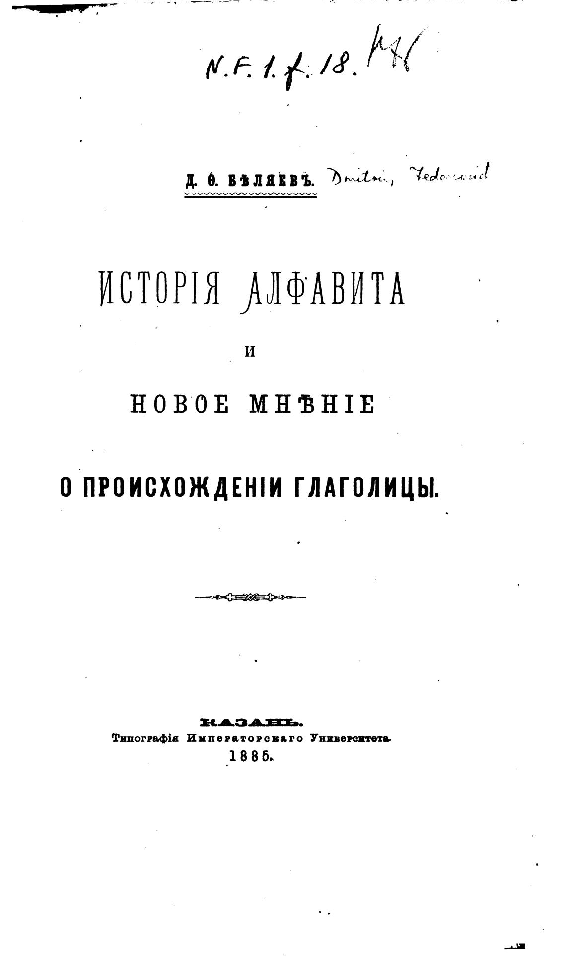 История алфавита и новое мнение о происхождении глаголицы. - Беляев Д. Ф.