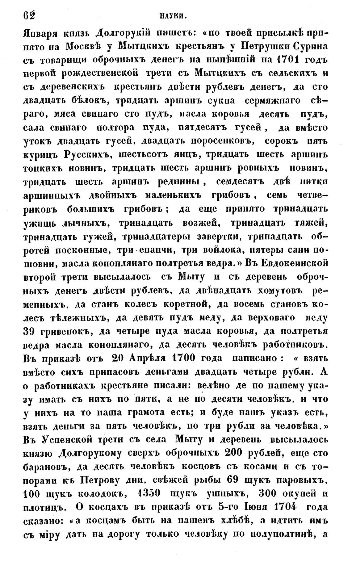 кт-иязю Долгорукому сверхъ оброчныхъ 200 рублей, еще сто