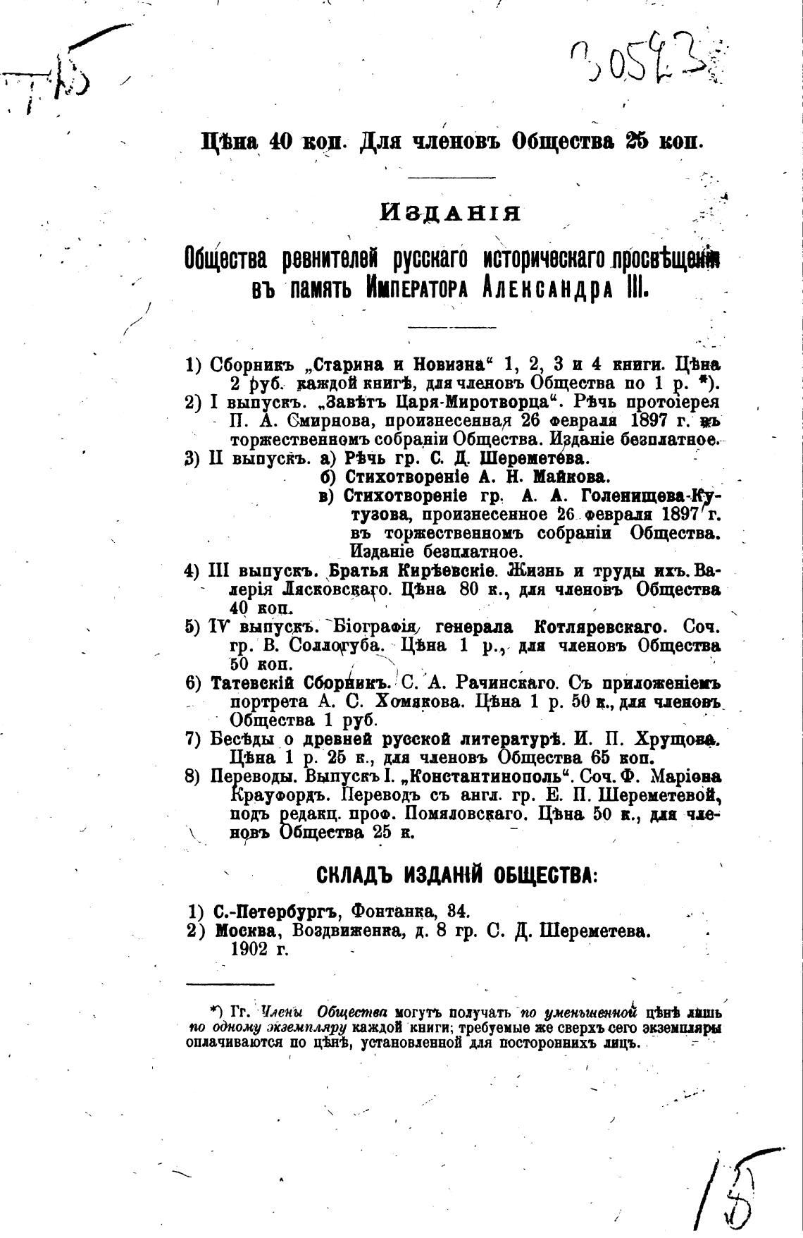 иона 40 вои. Для членовъ Общества коп.