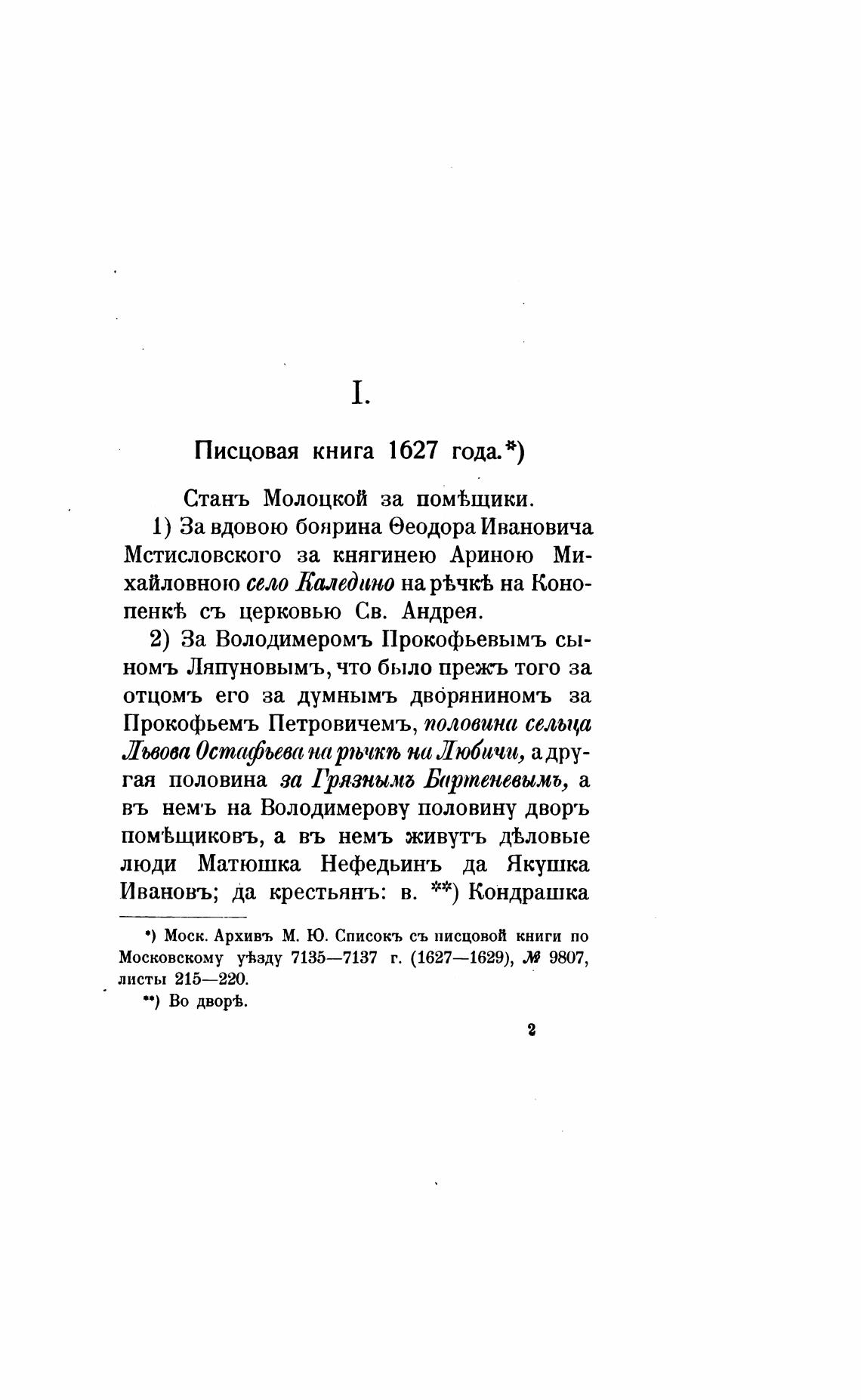 в) Моск. Архивъ М. Ю. Списокъ съ писцовой книги по