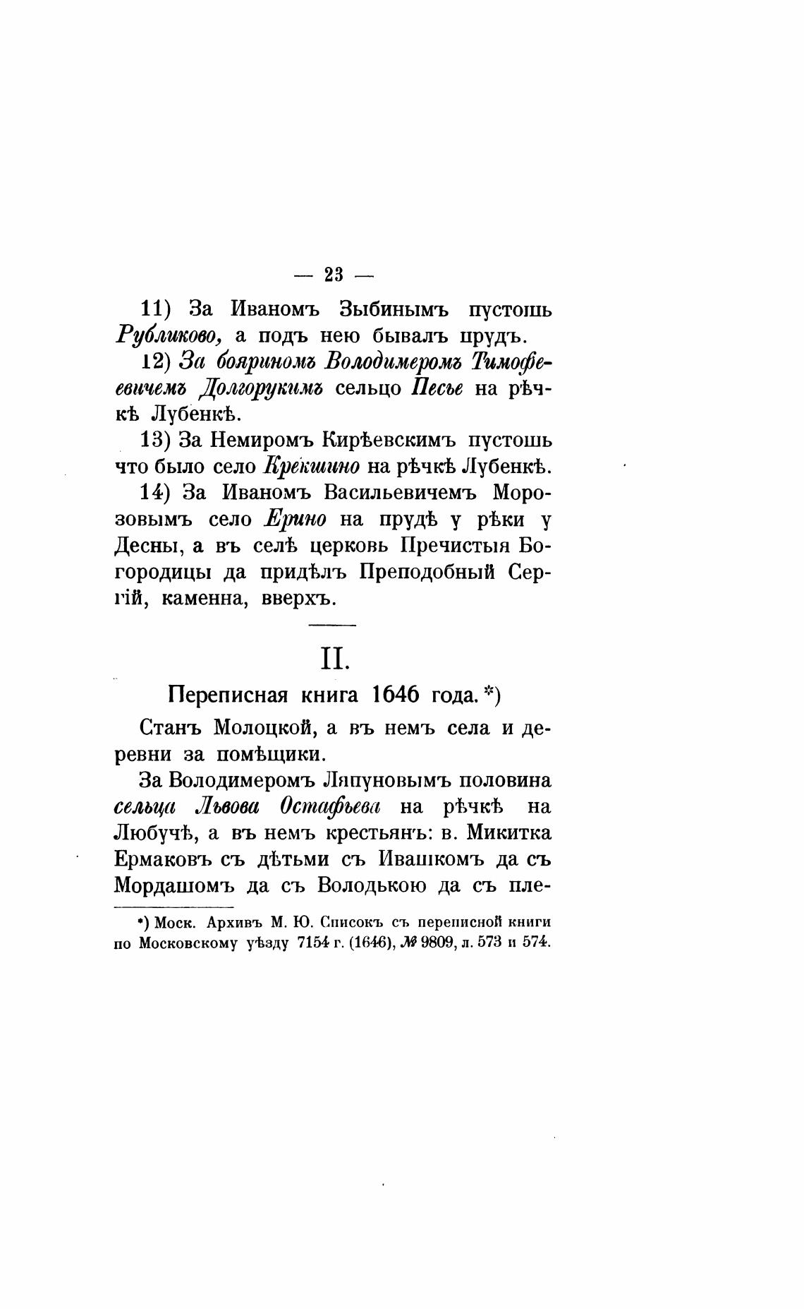 по Московскому утзду 7154 г. (1646), М 9809, л. 573 и 574.