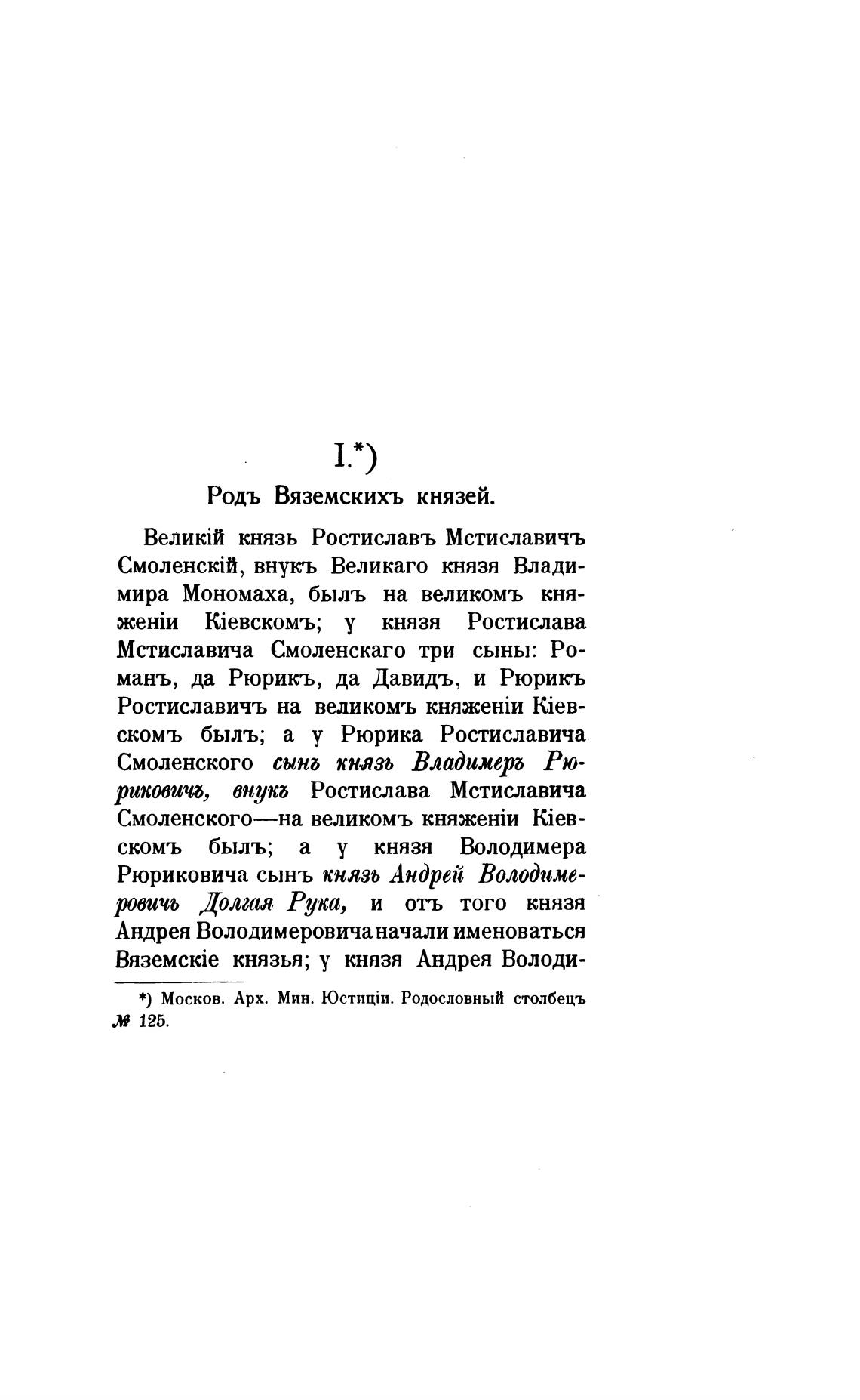Родь Вяземскихъ князей.