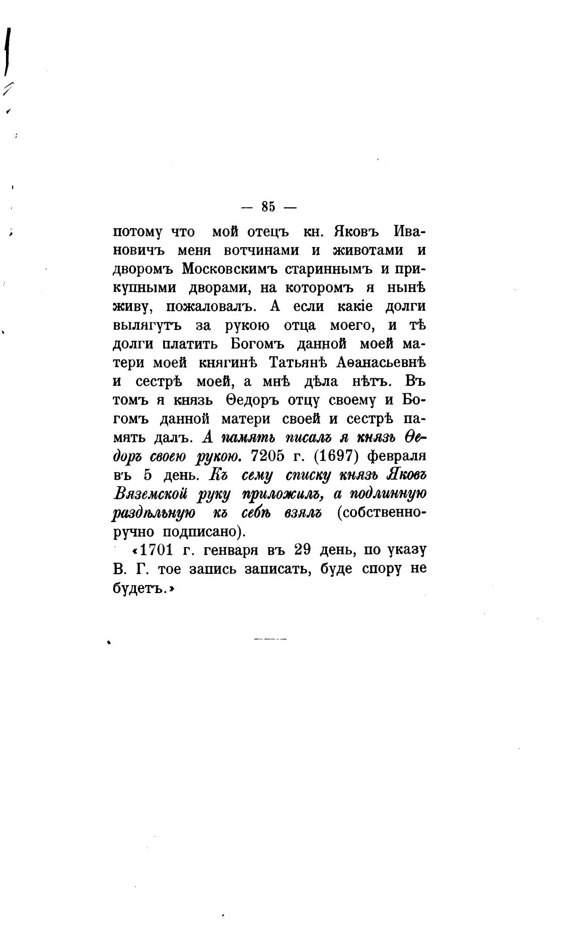 Дор своею рукою. 7205 г. (1697) февраля