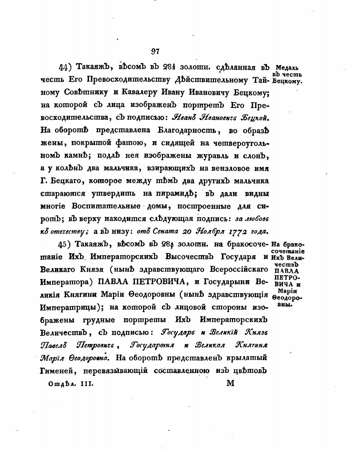 44) ТакаяжЪ, вЬсомЪ въ 984 золотн. сдЬланная въ Медаль