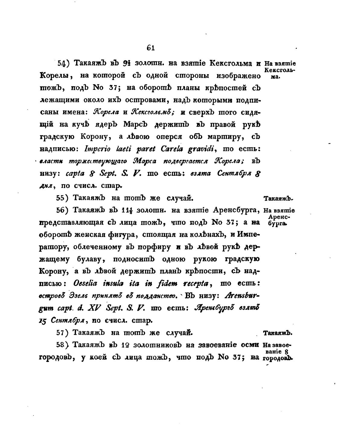 54) ТакаяжЪ въ 9! золоптн. на Кексгольма п на
