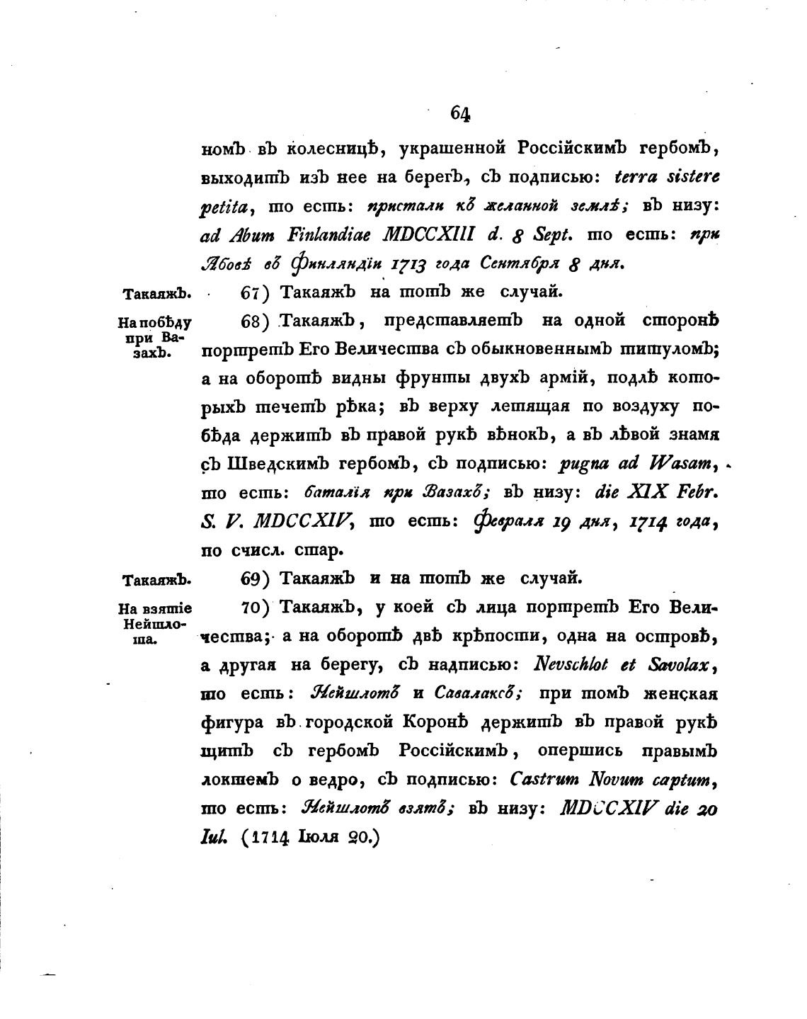 70) ТакаяжЪ, у коей съ лица портретЪ Его Вели-