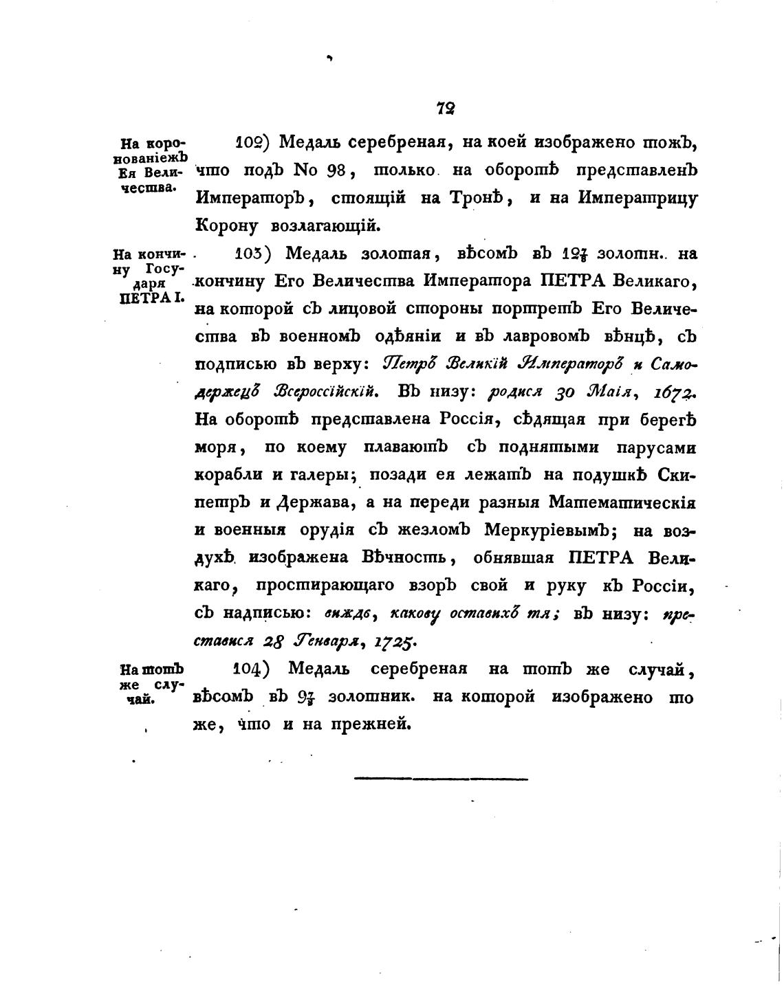 даря „кончину Его Величества Императора ПЕТРА Великаго,