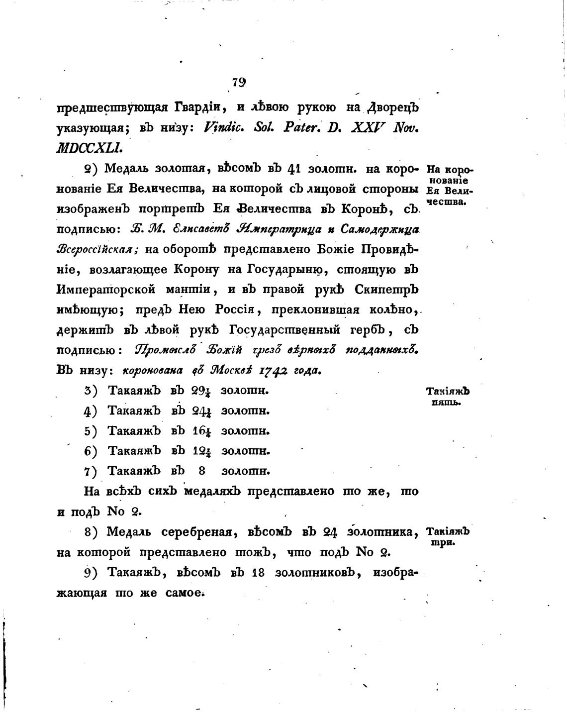 9) Медаль золотая, вЬсомЪ въ 41 золотн. на коро- на коро-