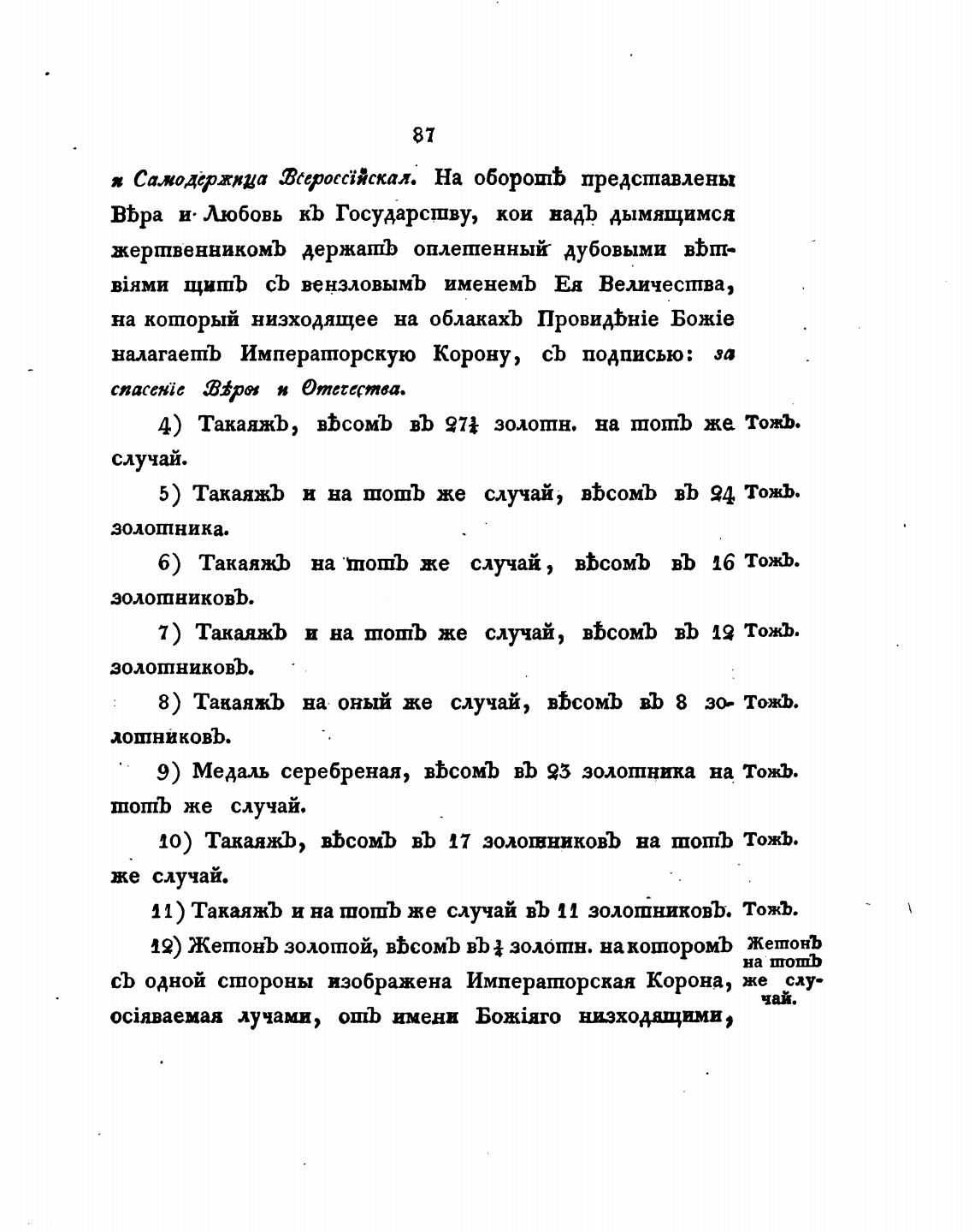 9) Медаль серебреная, вђсомЪ въ 95 золотника на тожЪ.