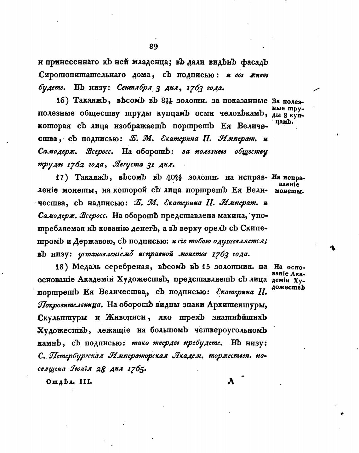 честна, съ надписью: 6. М. Екатерина II. Илперат. в