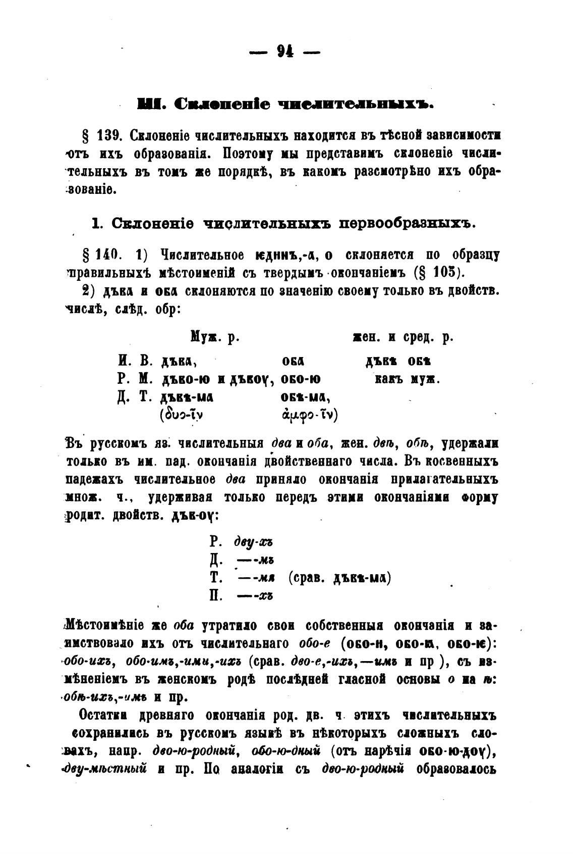 S 140. 1) Числительное кдннъ,-а, о склоняется по образцу