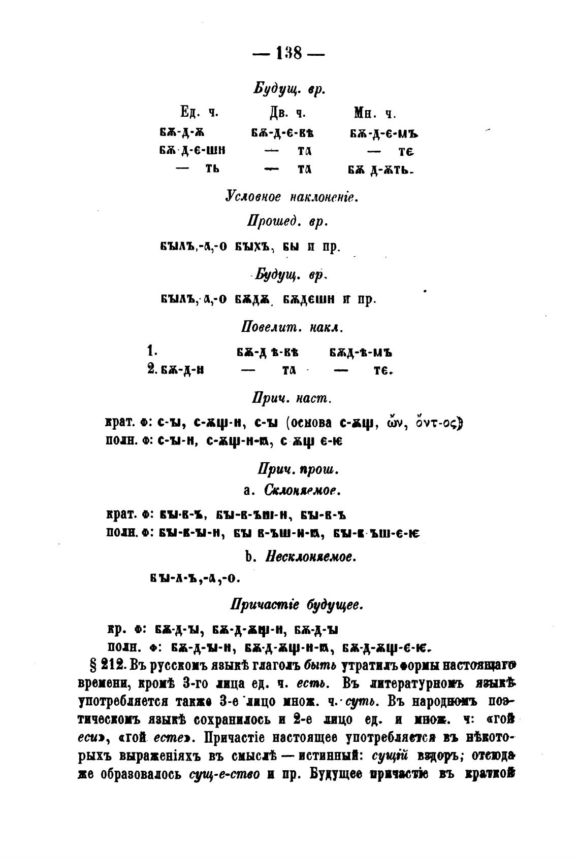 S 212. Въ русскоиъ глаголь быть утратил•ориы настоящат