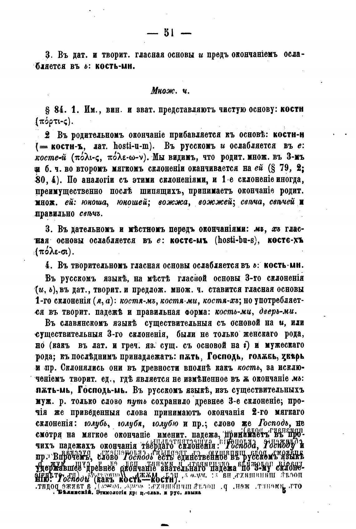 S 84. 1. Им., вин. и зват. представдяютъ чистую основу: костн
