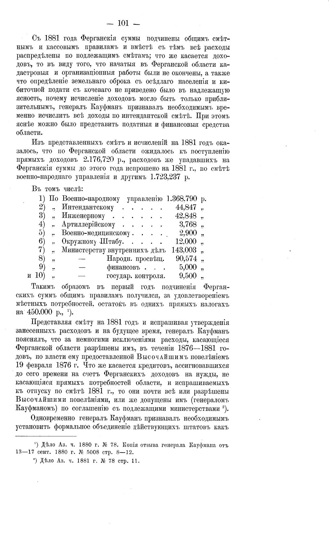 ФерганскЈя суммы до этого года испрошено на 1881 г.,