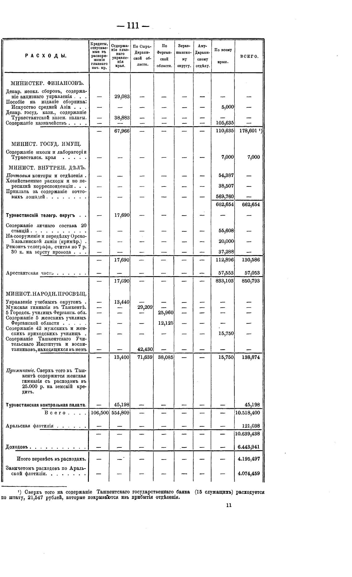 Завычетомъ расходовъ по Араль-