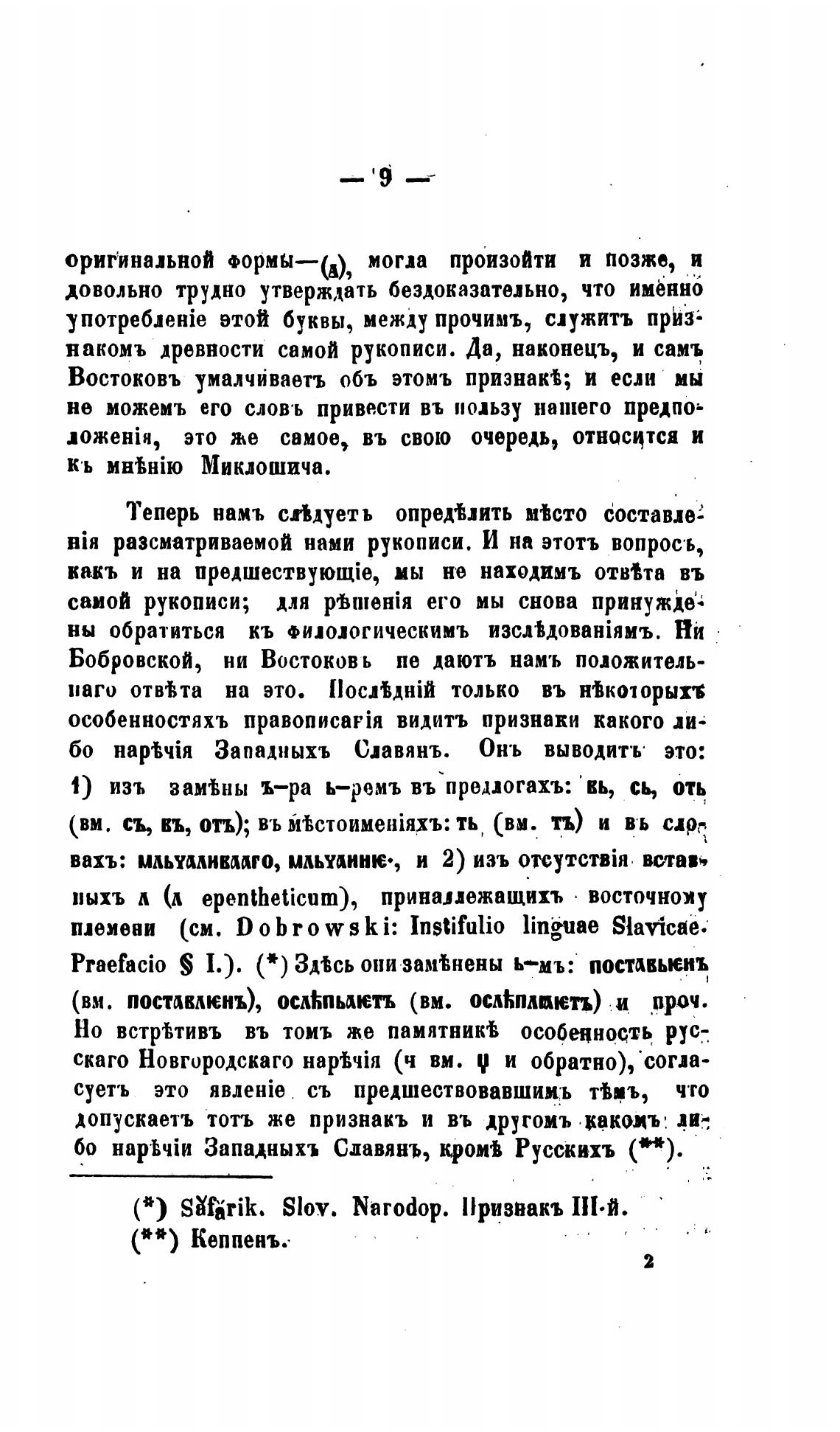Востоковъ умалчйваетъ объ этомъ признакЧ и если мы