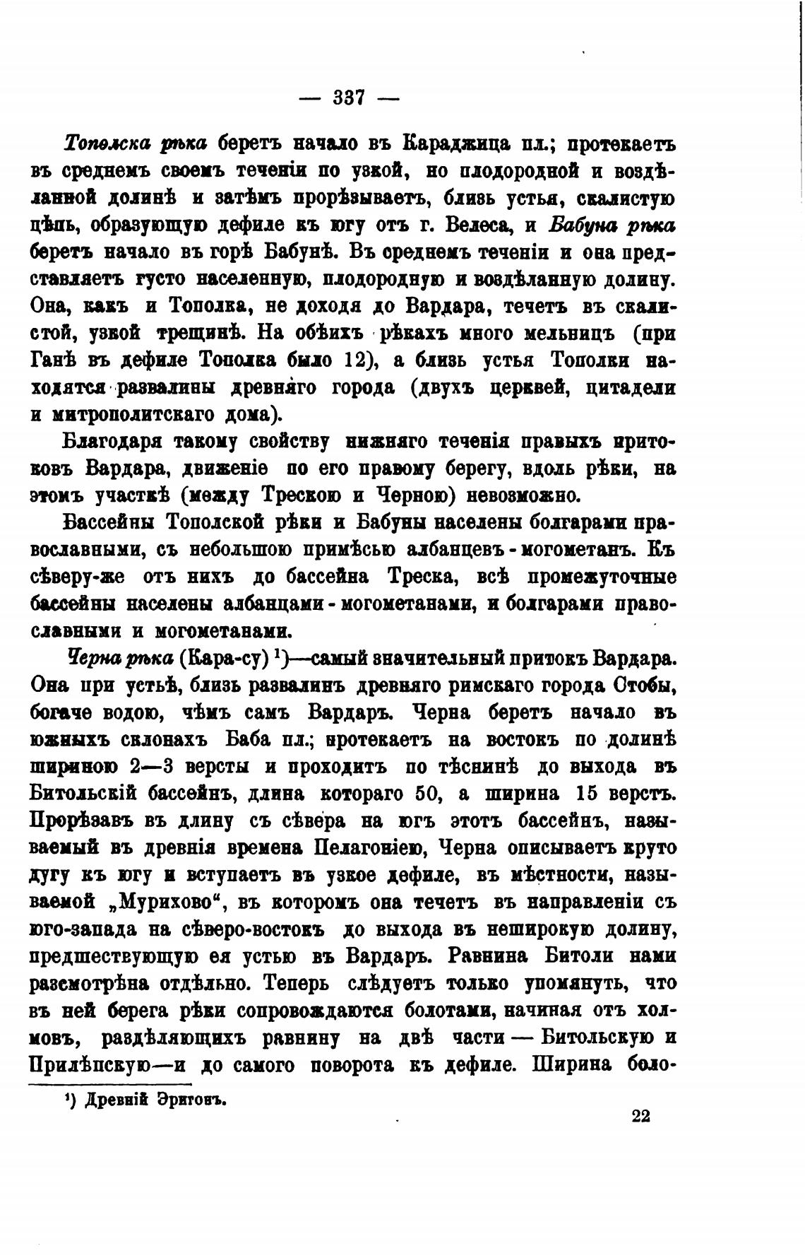 Она, вавъ и Тополва, не доходя до Вардара, течетъ въ сваи-