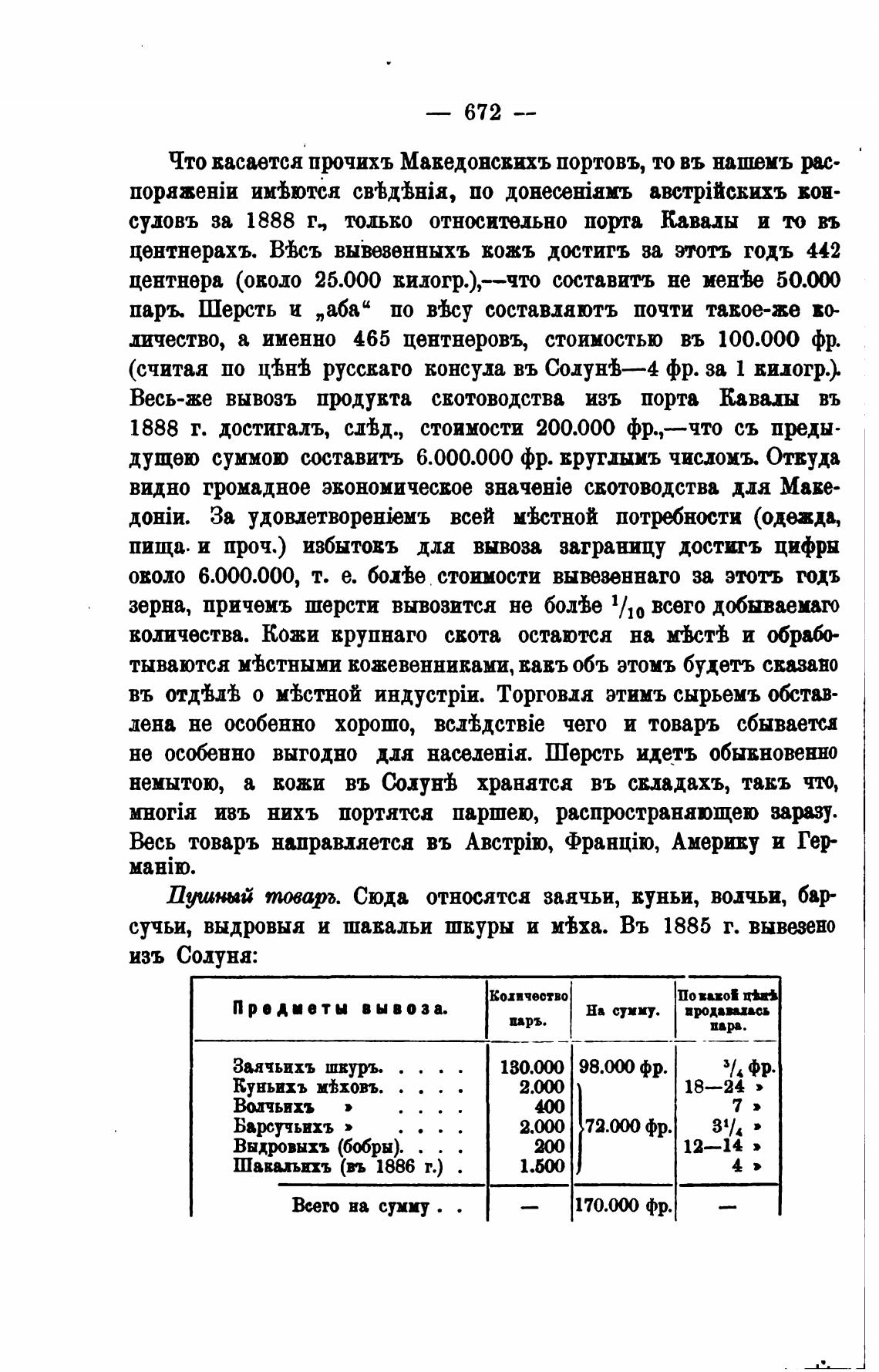 сучьи, выдровыа и шавальи шкуры и Mixa. Въ 1885 г. вывезено
