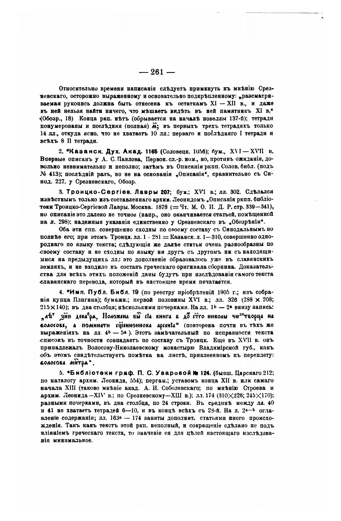 списокъ въ точности совпадаеть по составу съ Троицк. Еще въ Х ГИ в. онъ