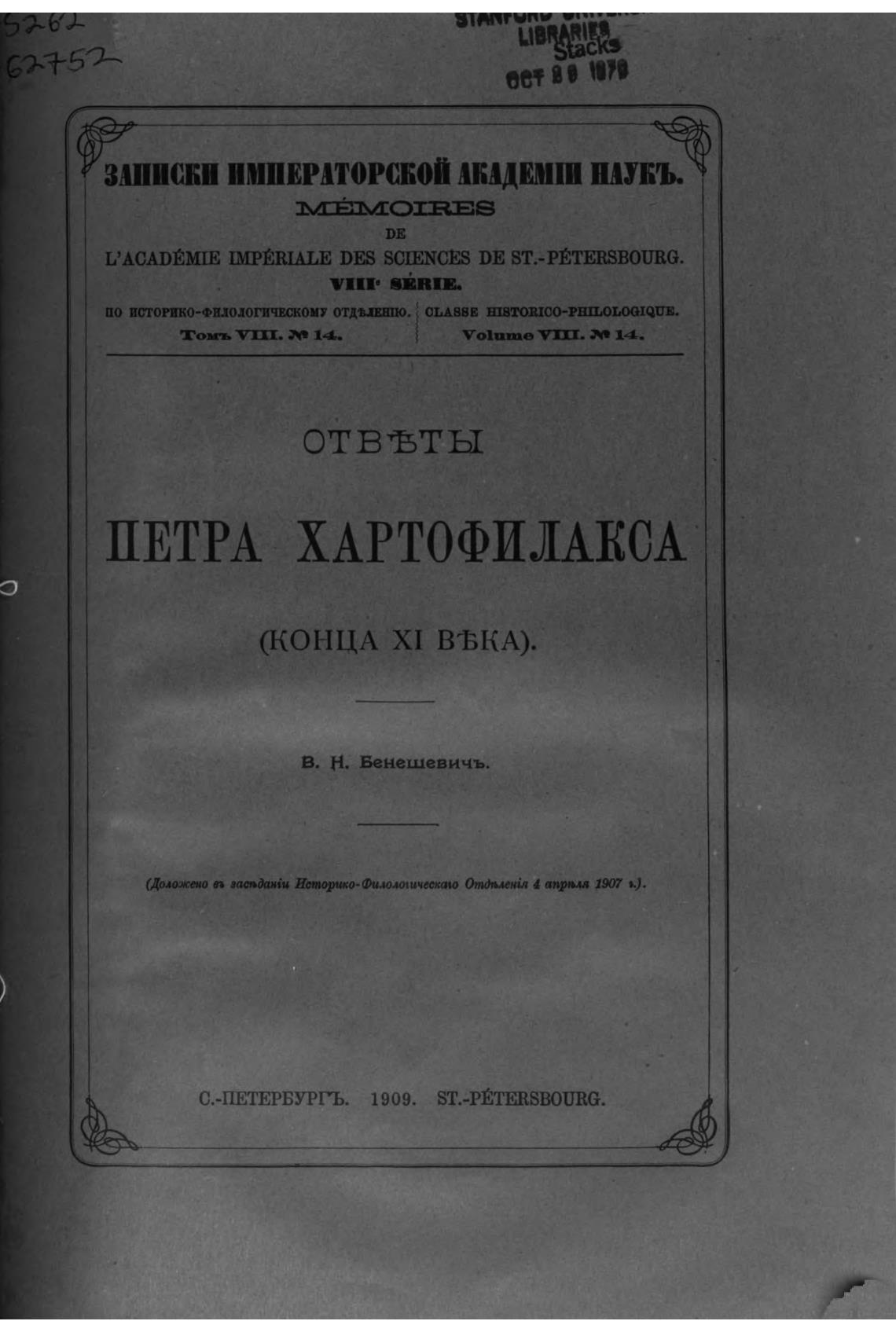 (Доложено п зас•ћнт Истицко-филош.пичесха•о Опижл,ек'л к).