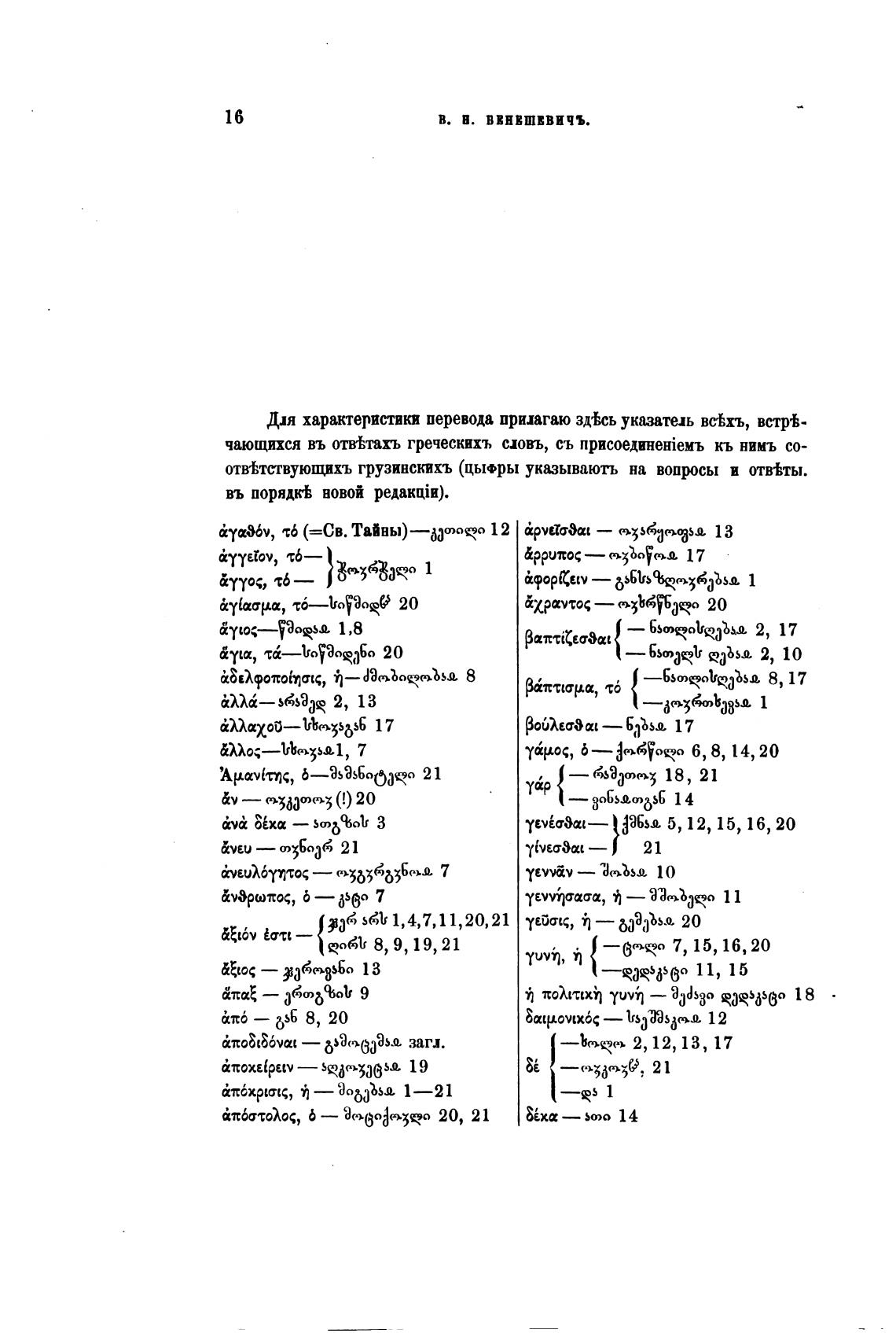 отвттствующихъ грузинскихъ (цьюры указывають на вопросы и отв%ты.