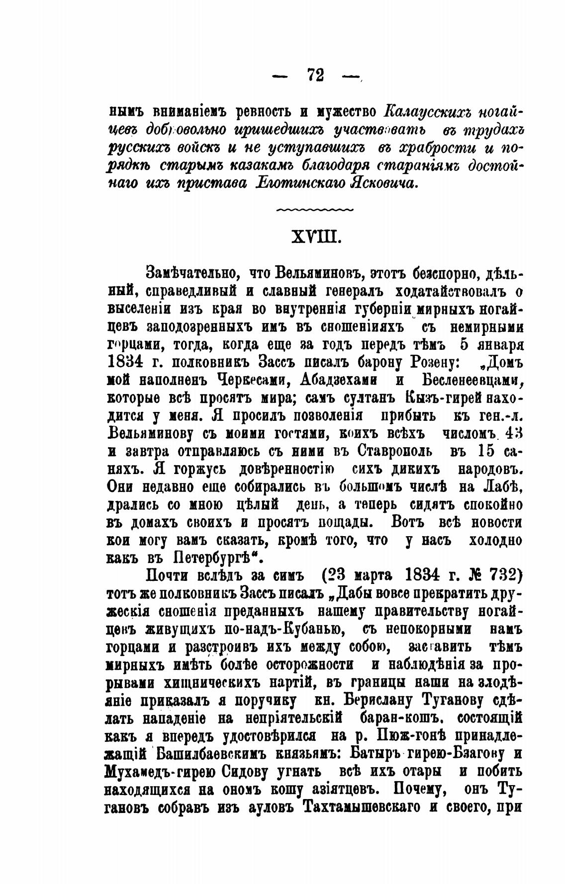 1834 г. ПОЛКОВНИЕЪ Зассъ писалъ барону Розену: „Домь