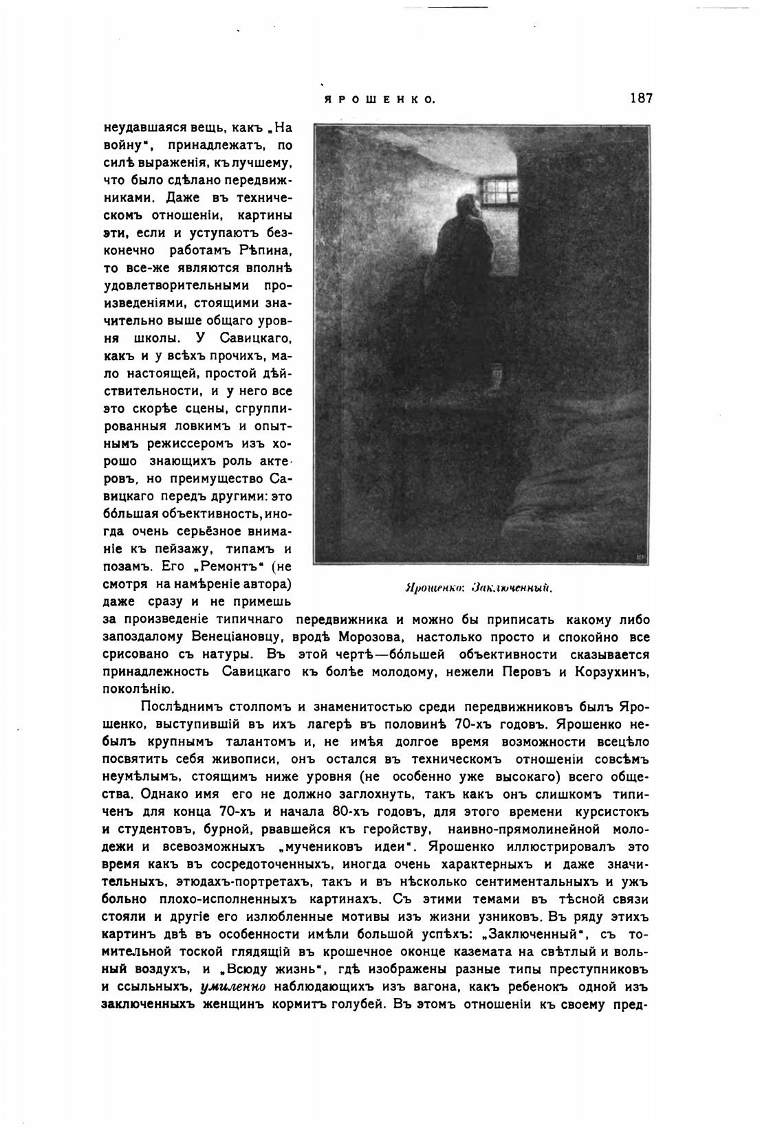 стояли и его излюбленные мотивы изъ жизни узниковъ. Въ ряду этихъ