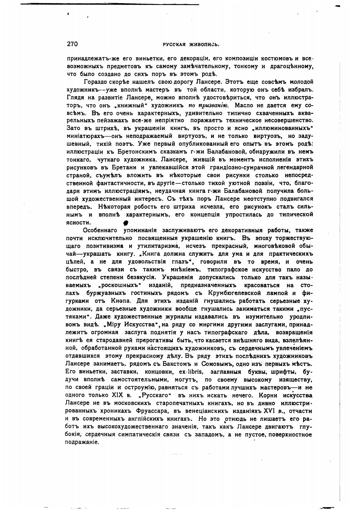 Лансере занимаетъ, рядомъ съ Бакстомъ и Сюмовымъ, одно изъ первыхъ “сть.