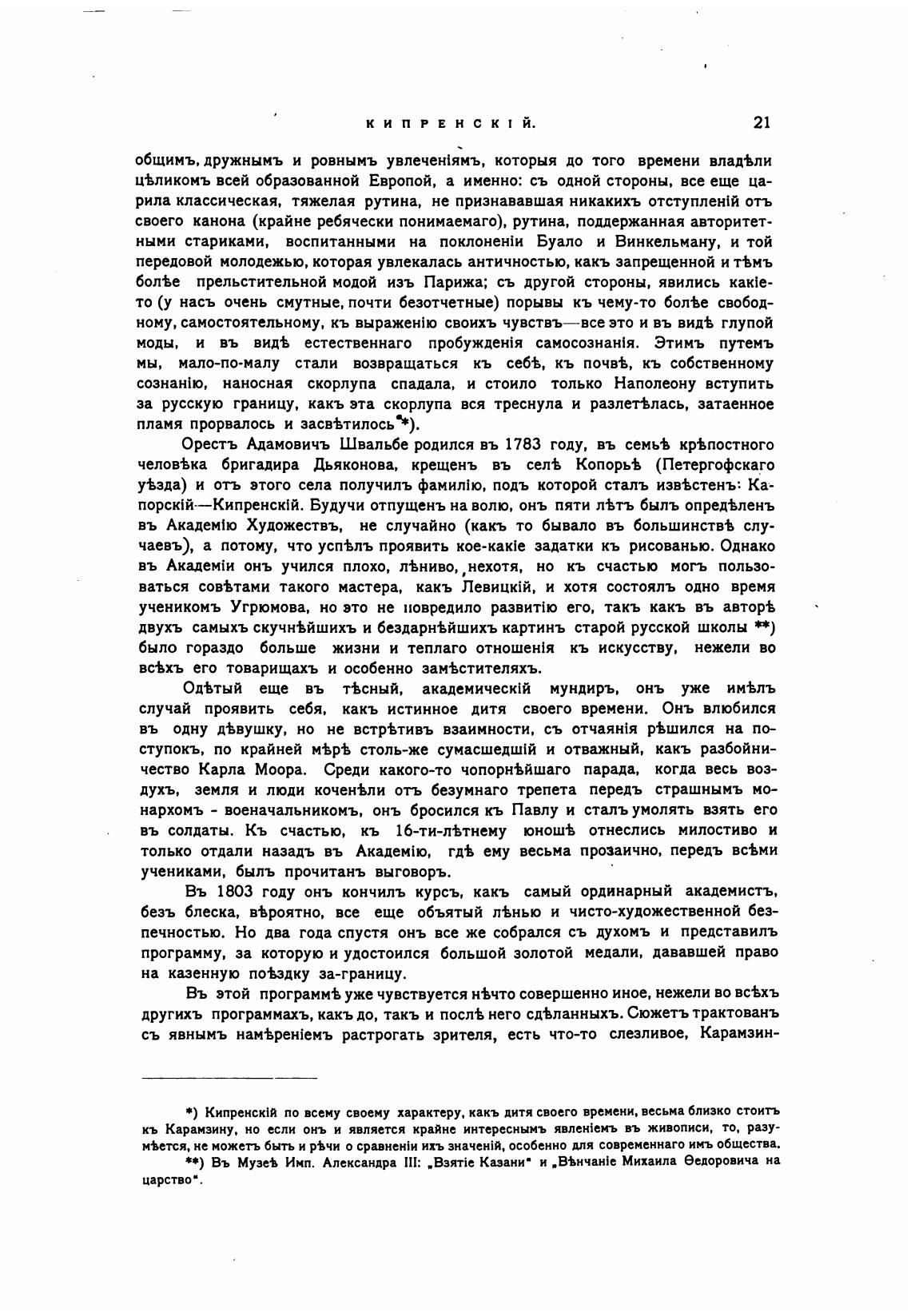 *) Кипренск\й по всему своему характеру. какъ дитя своего времени. весьма близко стоить