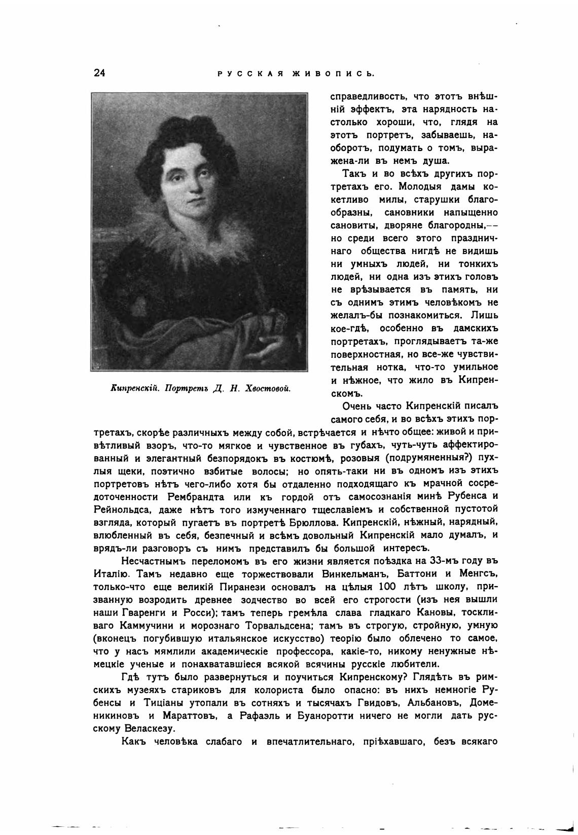 Кипренскт. Портрет; Д. Н. Хвостовой.